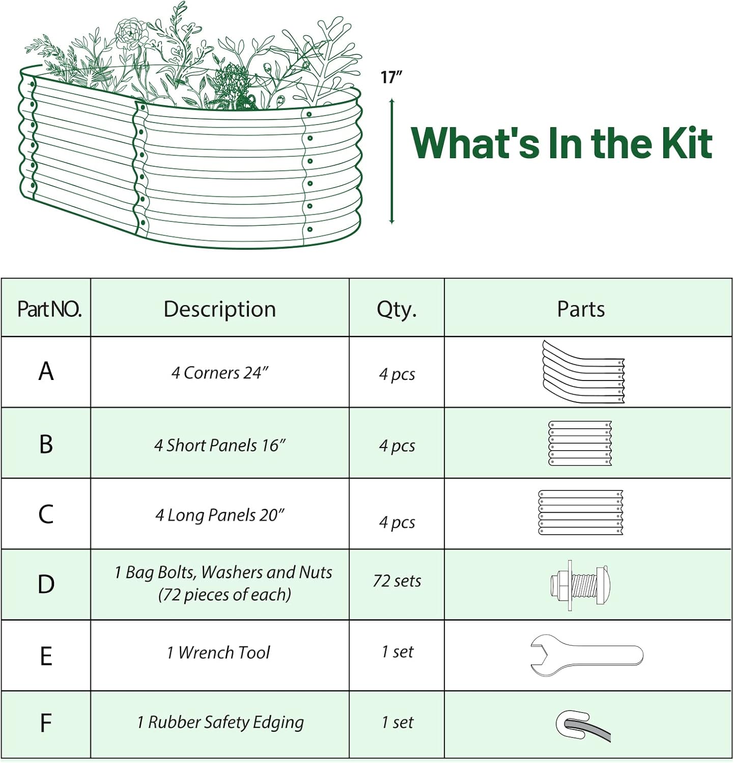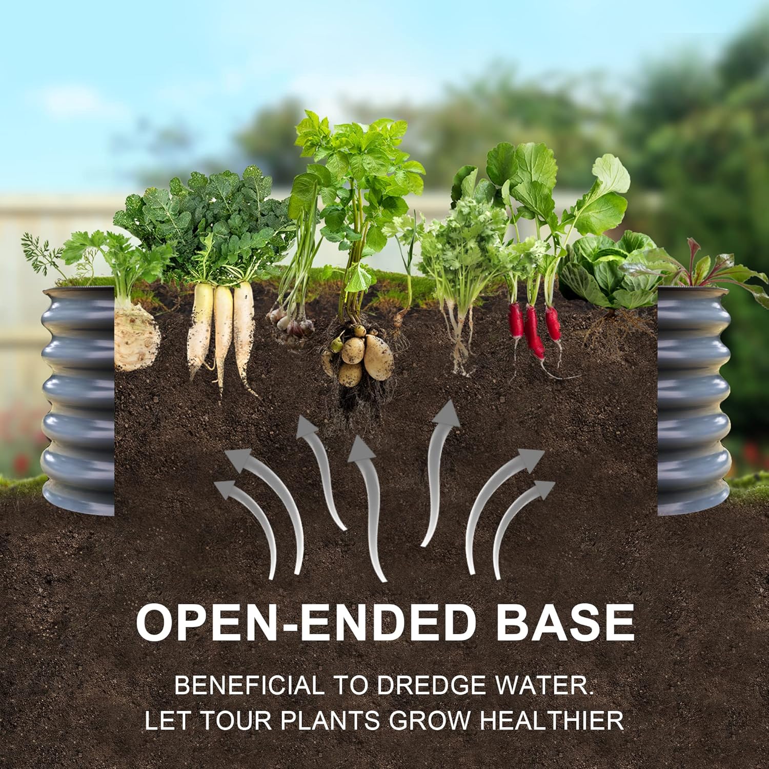 Olle 17" Tall Raised Garden Bed Kit Fruits Vegetables Flowers Planter Box 12-in-1 Galvanized Planter Boxes for Outdoors Size 5X5 Feets 8X2 Feets, Midnight Grey 17" Tall