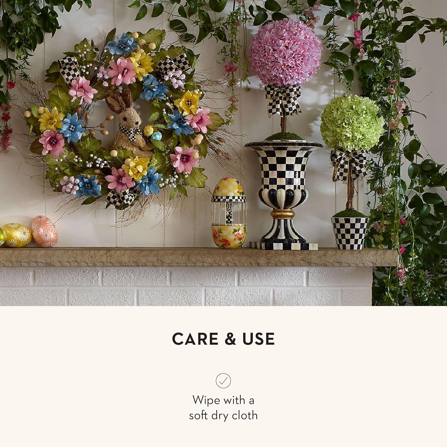 MACKENZIE-CHILDS Pedestal Tabletop Urn, Decorative Centerpiece for Table, Mantel, or Shelf, Tall, Black-and-White Courtly Check