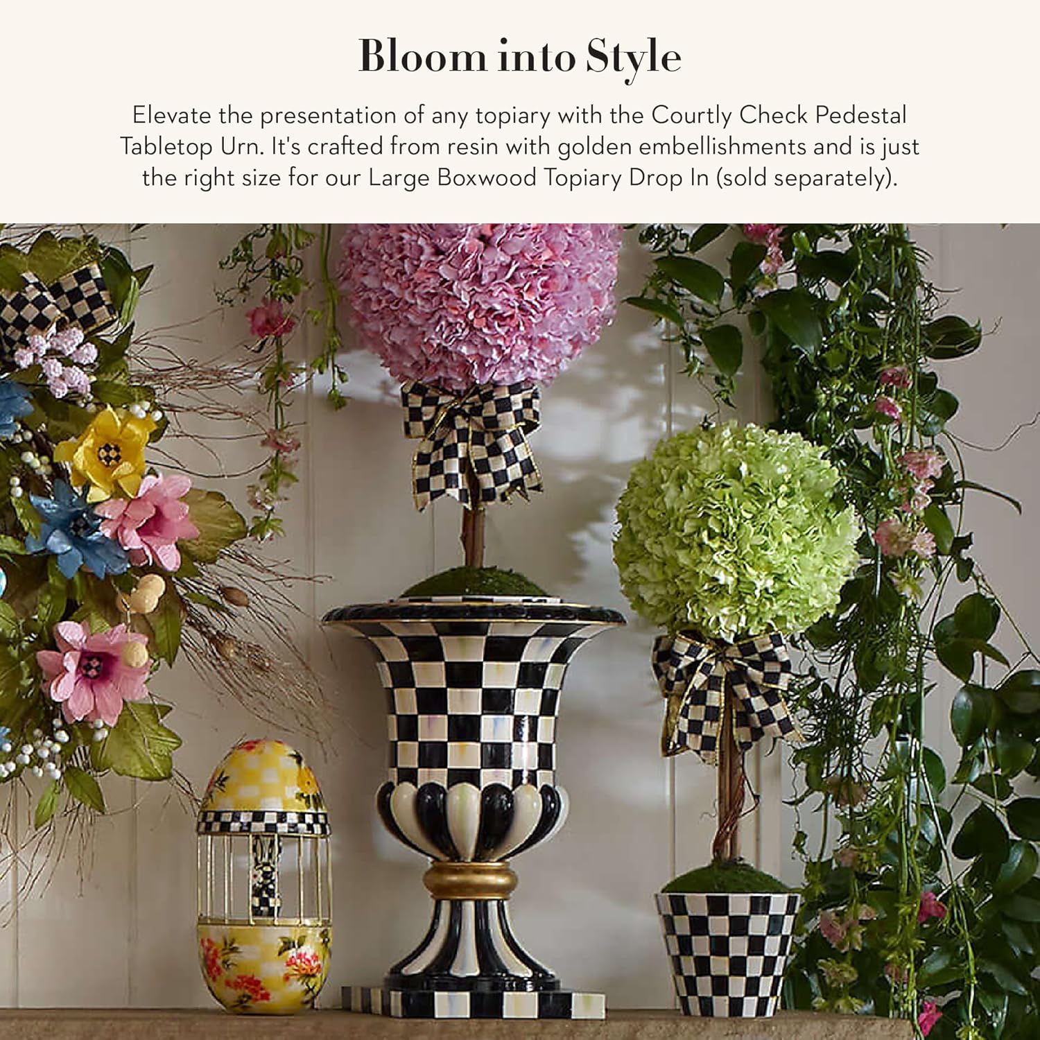 - DECORATIVE PEDESTAL VASE: Create the perfect centerpiece or elegant accent with this pedestal planter. It features our signature Courtly Check pattern with hand-painted black-and-white checks and golden embellishments.