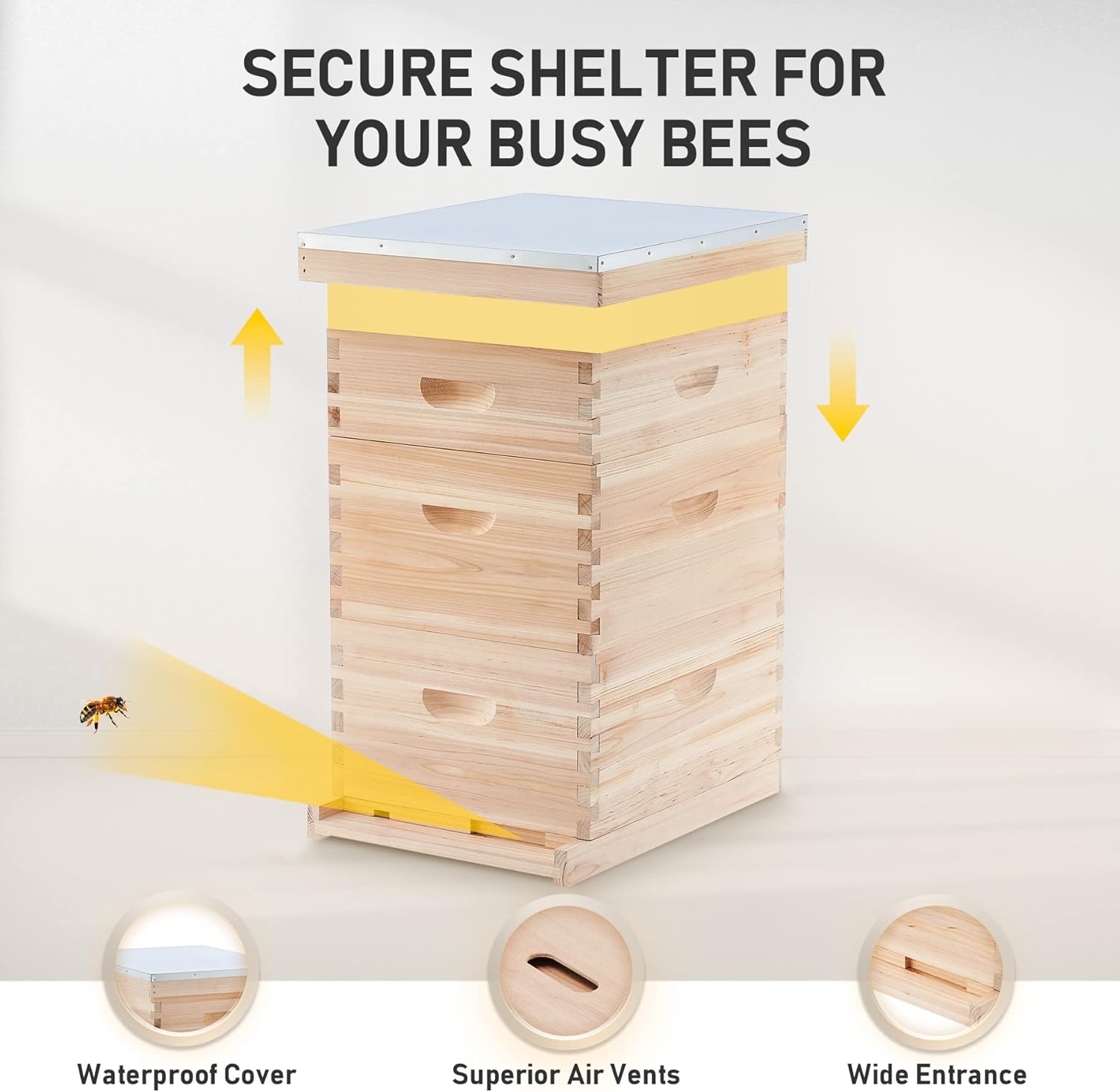 - Beekeeper-Friendly Features: This 3-layer starter kit is thoughtfully designed with a solid bottom board, widened entrance reducer, plastic queen excluder, and inner cover, making it suitable for beekeepers of all experience levels