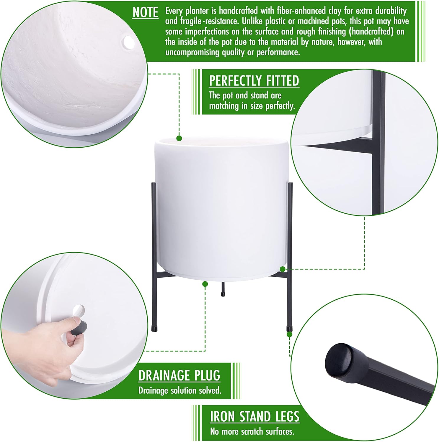 - Handcrafted Fiber Clay Planter: The planter is handcrafted from fiber clay and has a modern round white pot design.