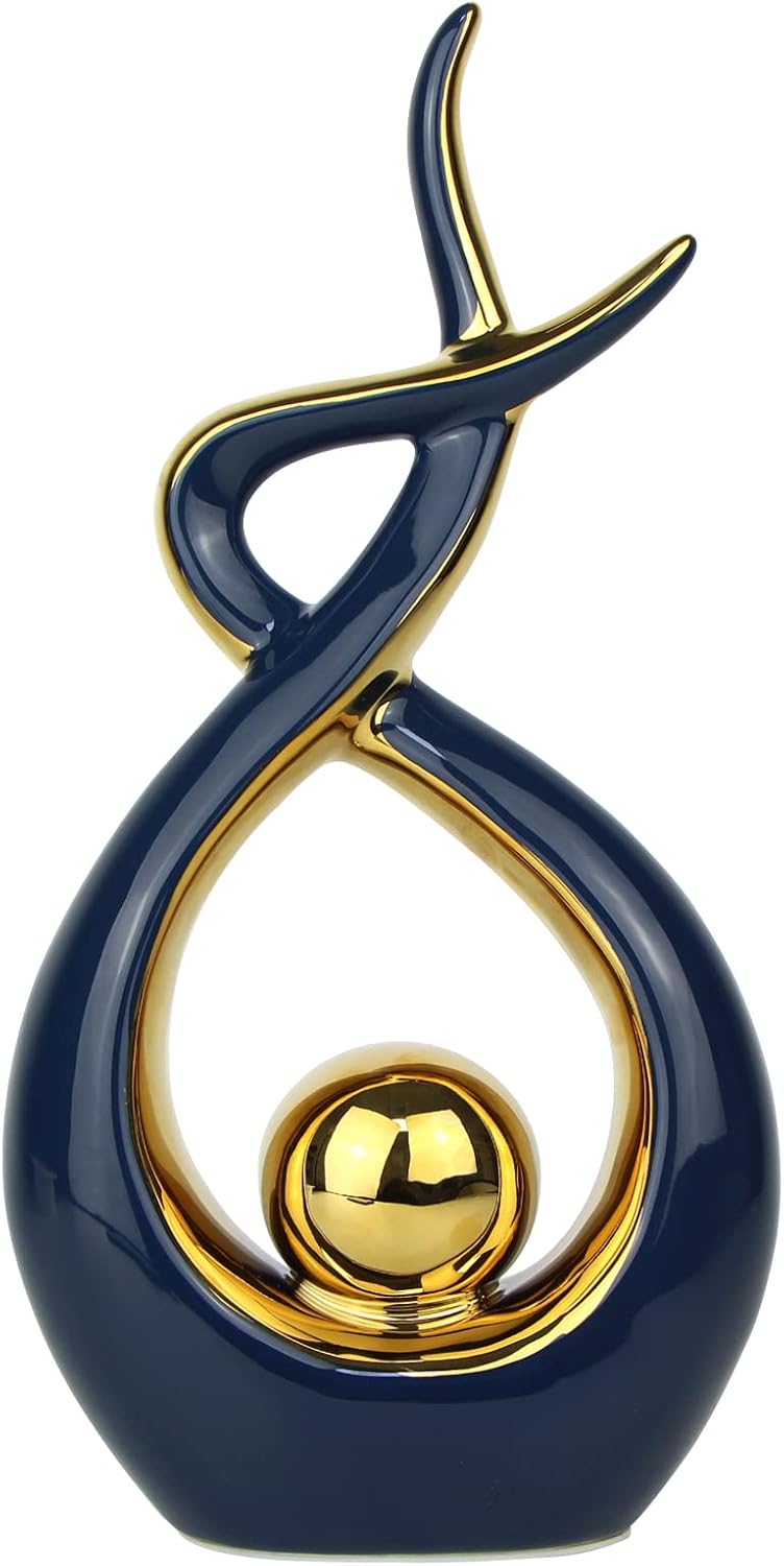 Norrclp Home Decor Modern Abstract Art Ceramic Statue Table Decorations for Dining Room Living Room Office Centerpiece (Blue and Gold, Large)