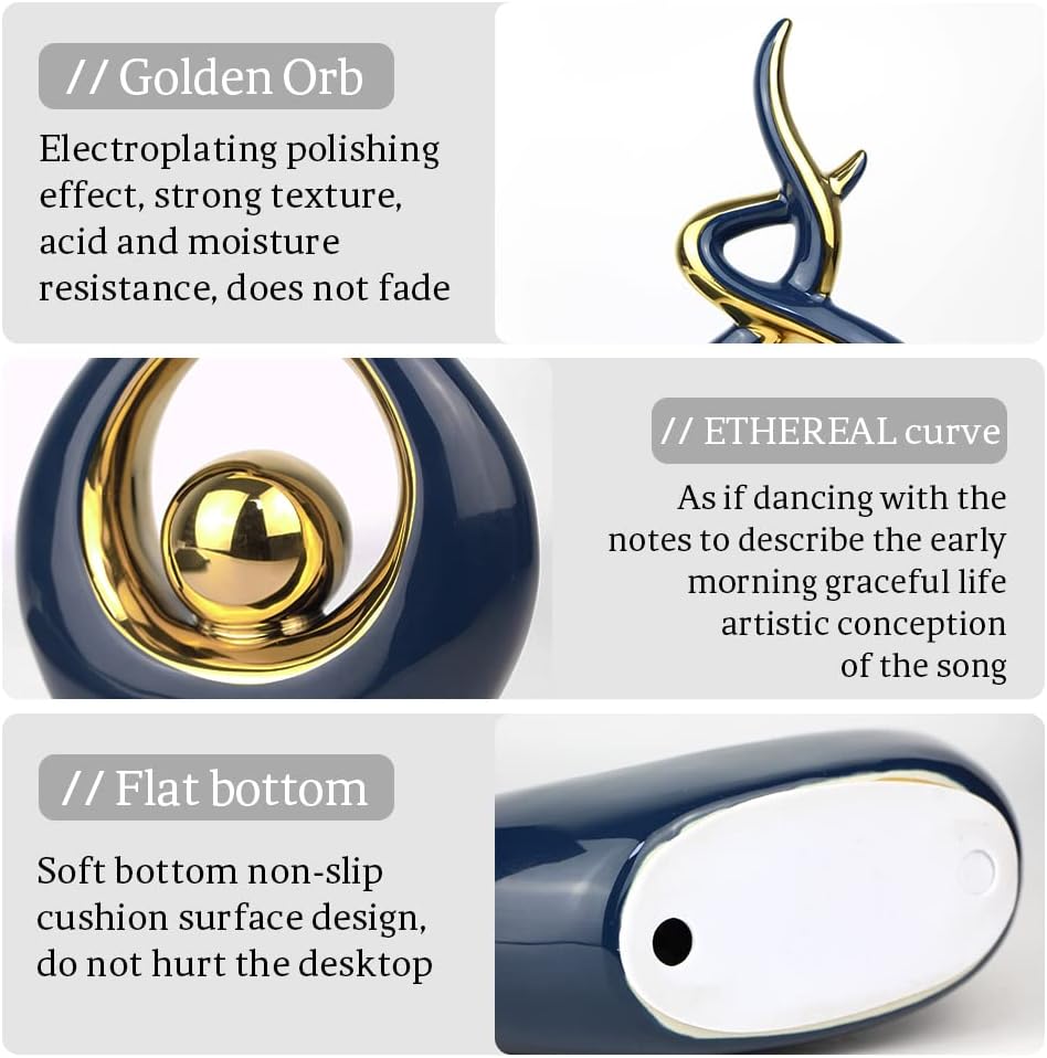 Norrclp Home Decor Modern Abstract Art Ceramic Statue Table Decorations for Dining Room Living Room Office Centerpiece (Blue and Gold, Small), Blue,gold
