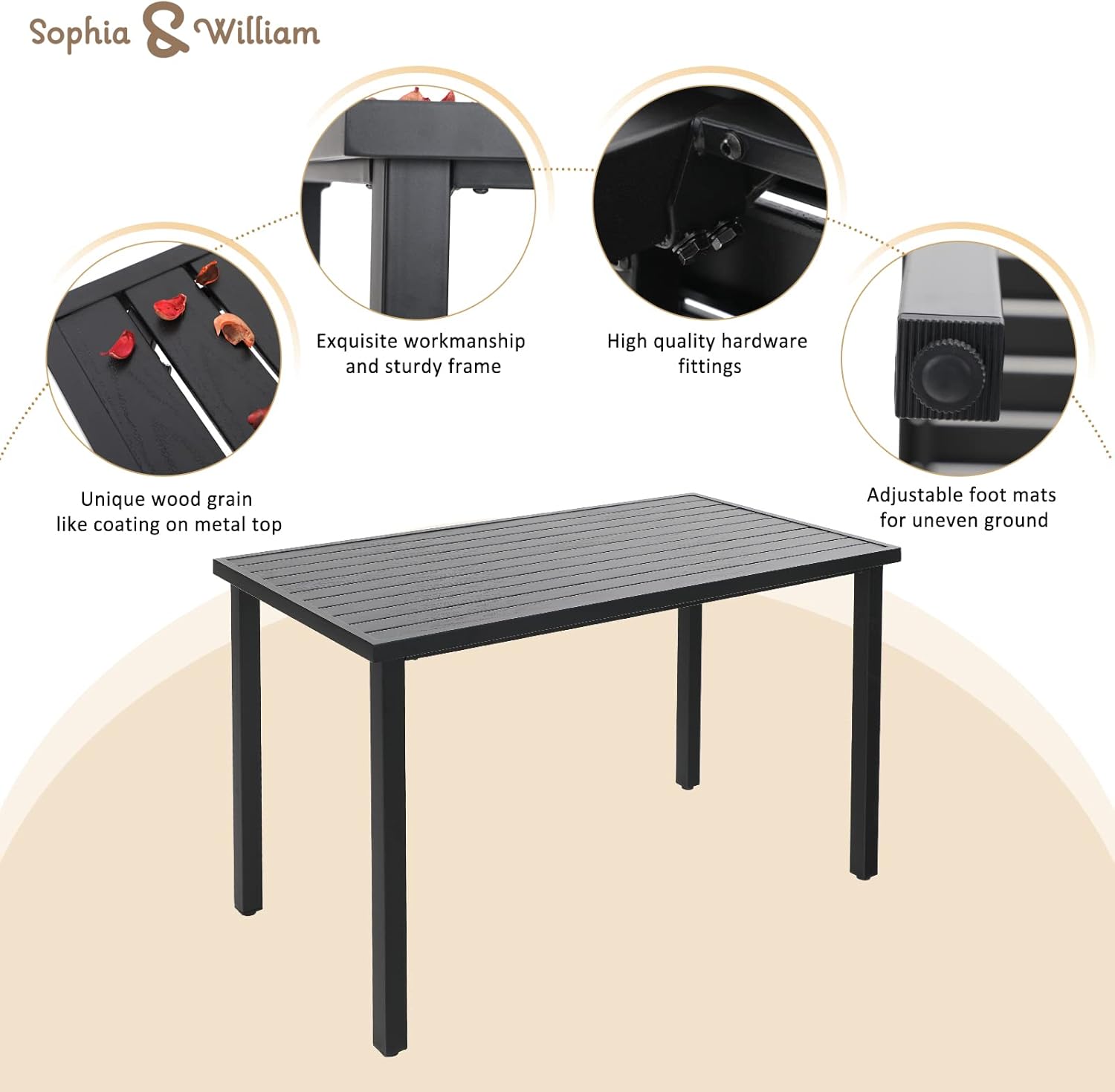 - Easy to Assemble: Our outdoor metal furniture set is easy to assemble with detailed installation manuals and complete accessories. Easy to clean with damp cloth and resistant to dirt and abrasion. Table Dimension: 55.9โL x 29.5โW x37โH, Chairs Dimension: 20โW x 21โโD x 46.5"H, Weight Capacity: 300lbs