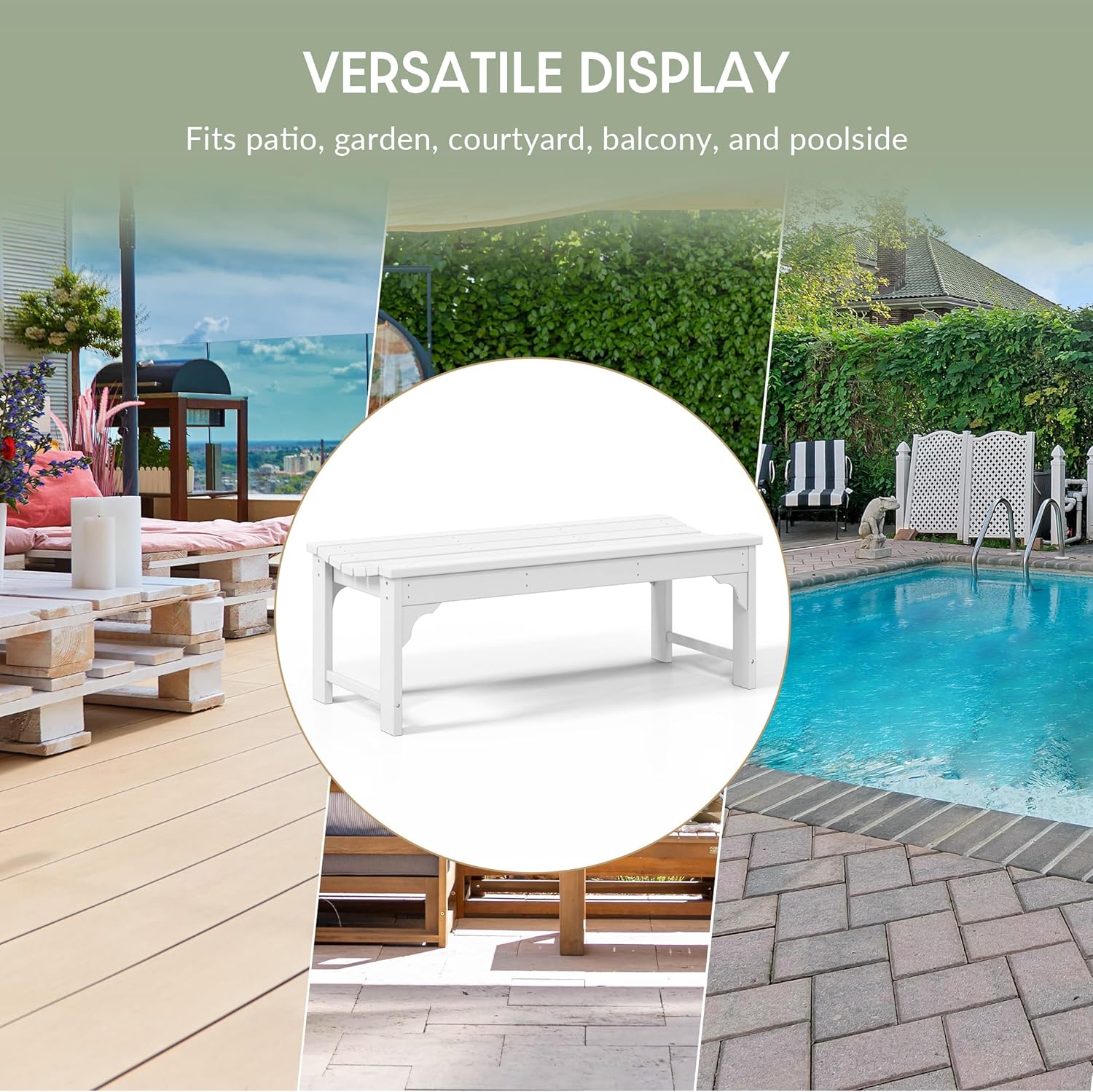 - Built to Last for Years: Crafted from durable HDPE poly lumber and secured with stainless steel fasteners, this garden bench won’t warp, crack, or fade. It stays cool in direct sunlight and stands up to wind and rain, providing reliable, weatherproof bench seating.