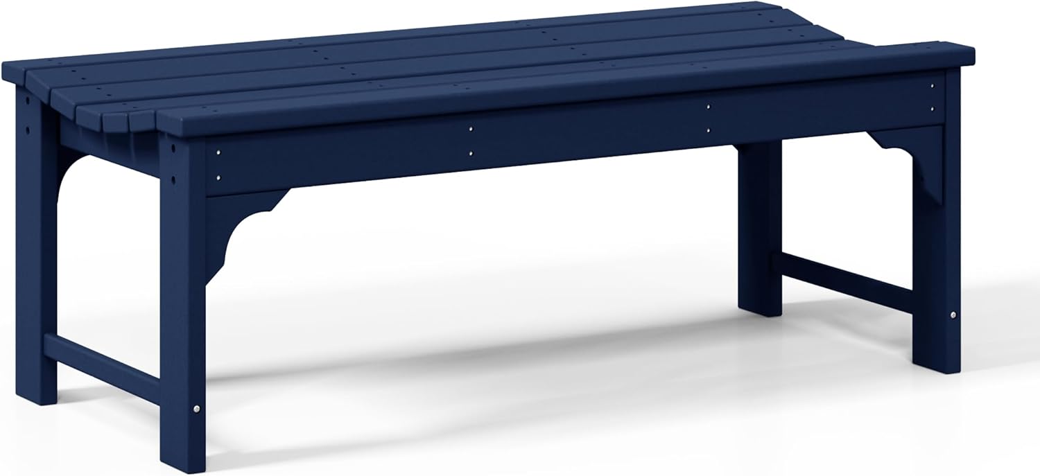 WestinTrends Malibu Outdoor Bench, All Weather Resistant Poly Lumber Backless Patio Garden Bench, Adirondack Curved Bench Seat for Comfort, Navy Blue