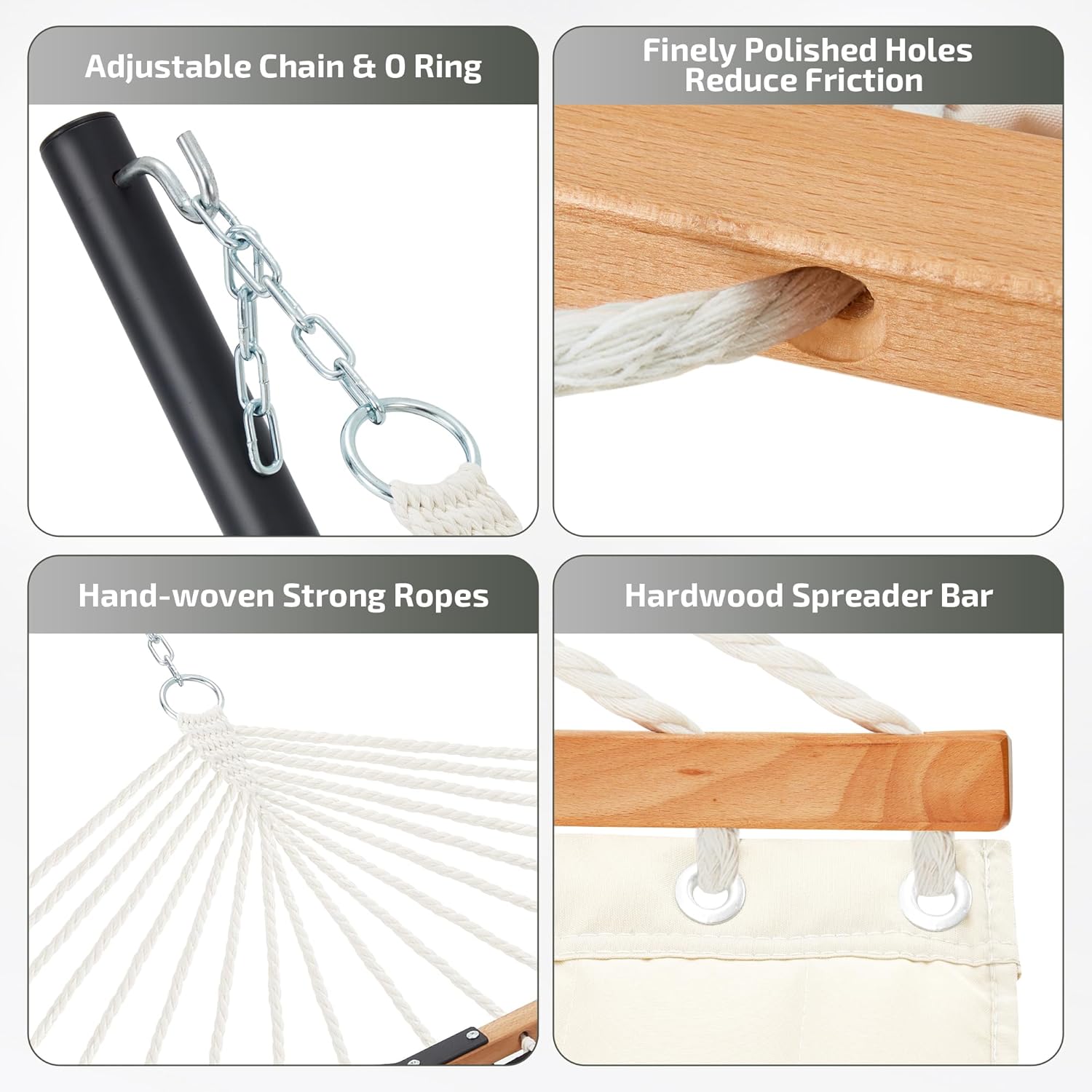 Two Person Hammock with Stand Heavy Duty, Outdoor Patio Hammock with Portable Steel Stand, Large Double Hammocks,480lbs Capacity.(Off White)