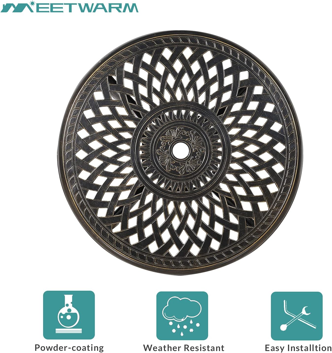 - 【Weather Resistant】 - At MEETWARM, we bring you the best outdoor furniture available. Our table and chairs are made of sturdy and durable cast aluminum with rust-resistant powder coated surface for years of outside use. If you use this set by the pool, its all-weather quality helps prevent water damage caused by wet swimsuits and splashing