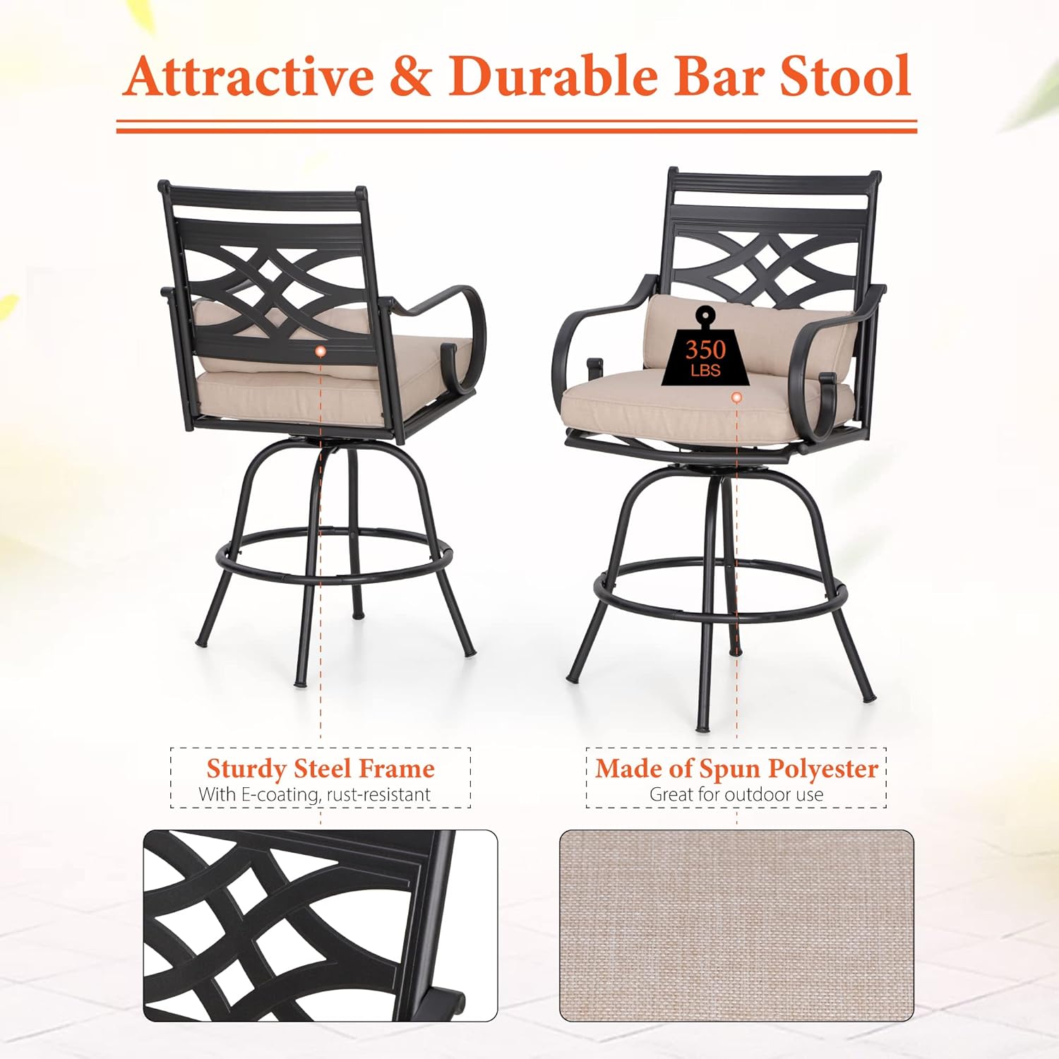 - Attractive High Dining Chair: Comes in black metal frame and beige cushions, classic back pattern easily goes with any decoration. It's nice to lounge in it and truely relax yourself. Each chair is crafted with powder-coated and e-coated steel frame, which is weather resistant