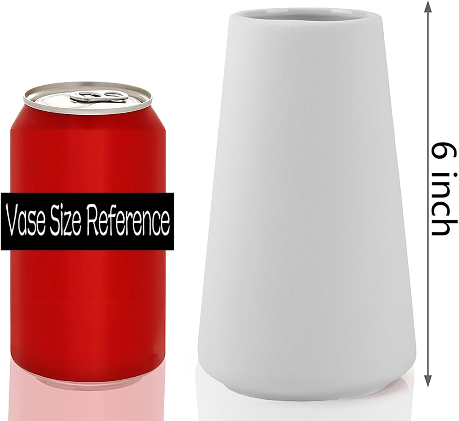Simple Vase for Flowers Plants, Matte Vases for Modern Table Shelf Home Decor Wedding Boho Decor, 6" H Frosted Elegant Ceramic Vase for Pampas Grass Fluffy Stem Bouquet Lavender Flowers (White, 2)