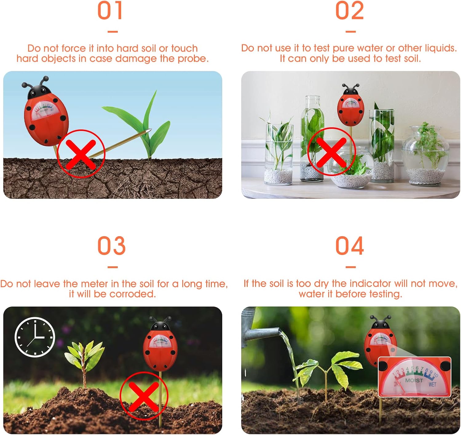 - 【CUTE LADYBUG DESIGN & PERFECT GIFT】Spruce up your garden tools with this fun and functional ladybug-themed moisture meter.Cute ladybug shape, suitable for children's gardening activities, and a perfect and practical gift for friends, kids, gardeners and others.