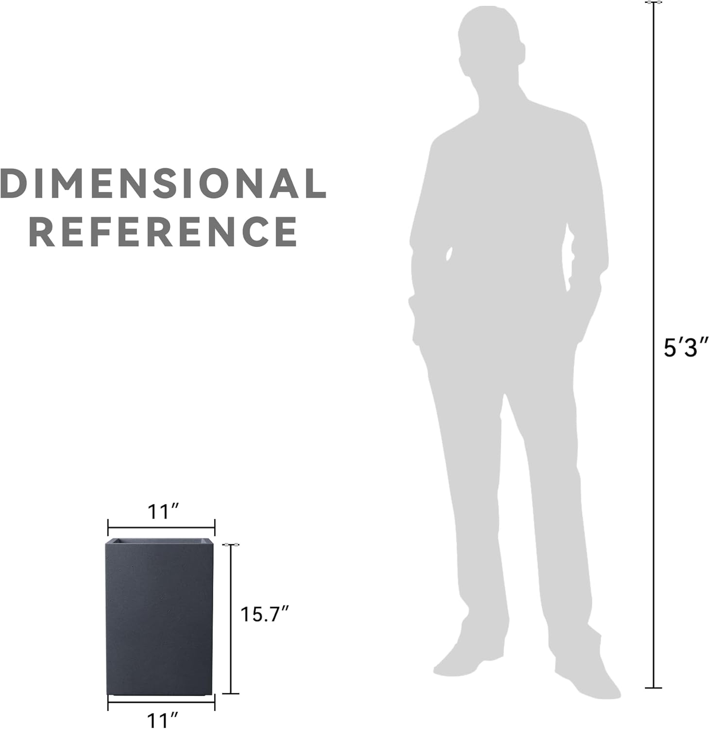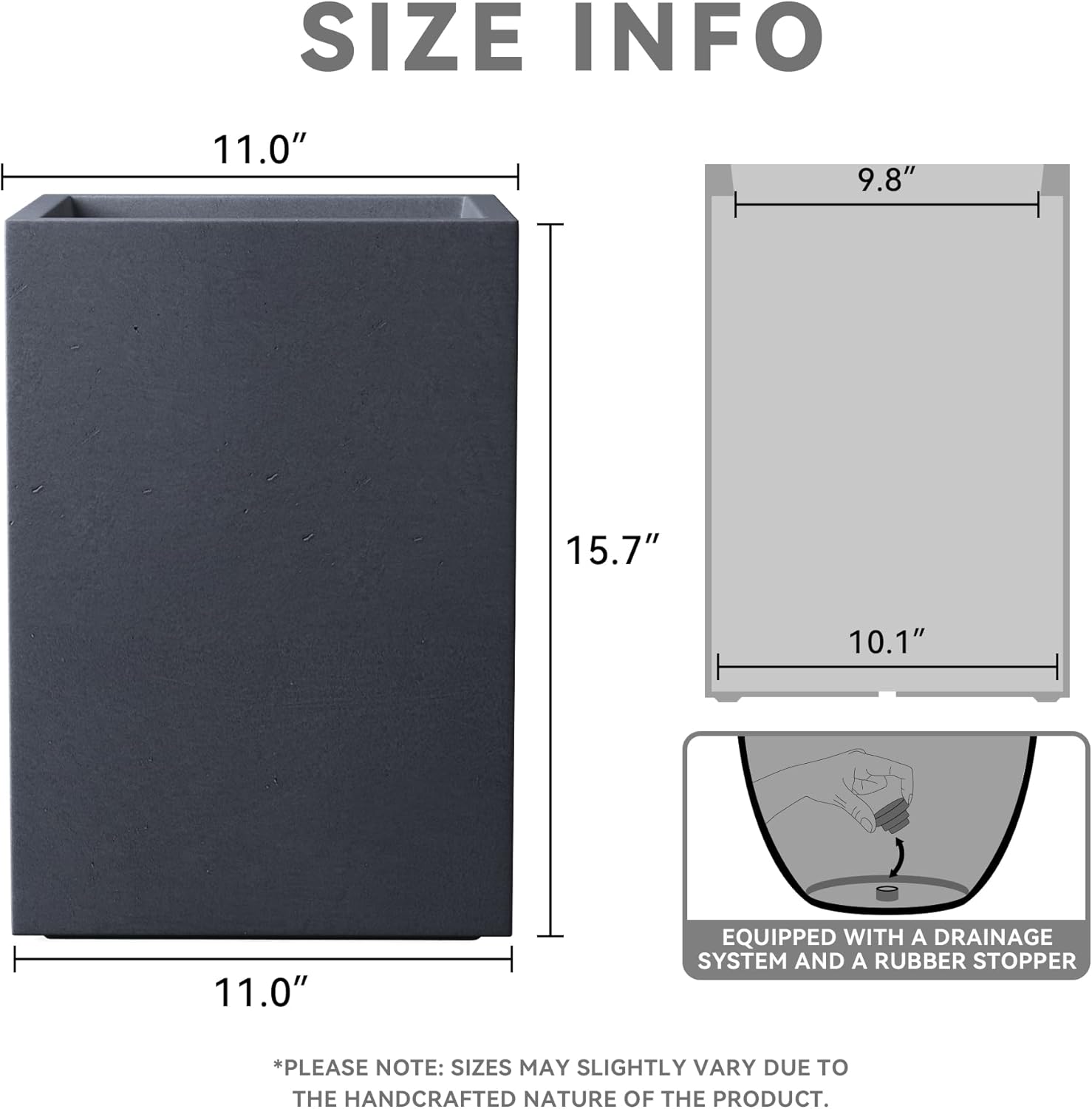 Kante 15.7" H Tall Rectangular Concrete Planters, Outdoor Indoor Lightweight Plant Pots with Drainage Hole and Rubber Plug, Modern Style for Home Garden Patio, Charcoal