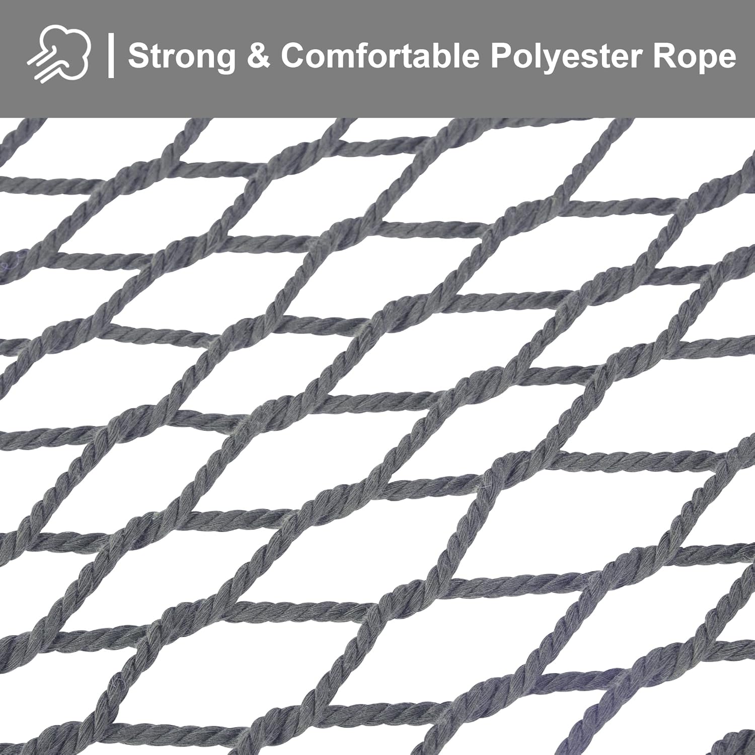 - Upgraded 30% Thicker Ropes: The upgraded strong polyester ropes are hand-woven with comfortable, long-lasting threads woven by the hammock artisans, 30% thicker than before. When you lay on the rope hammock, it helps you relieve stress and provide better blood circulation throughout the body. And thanks to the well ventilated mesh, your back wonβt be sweaty anymore