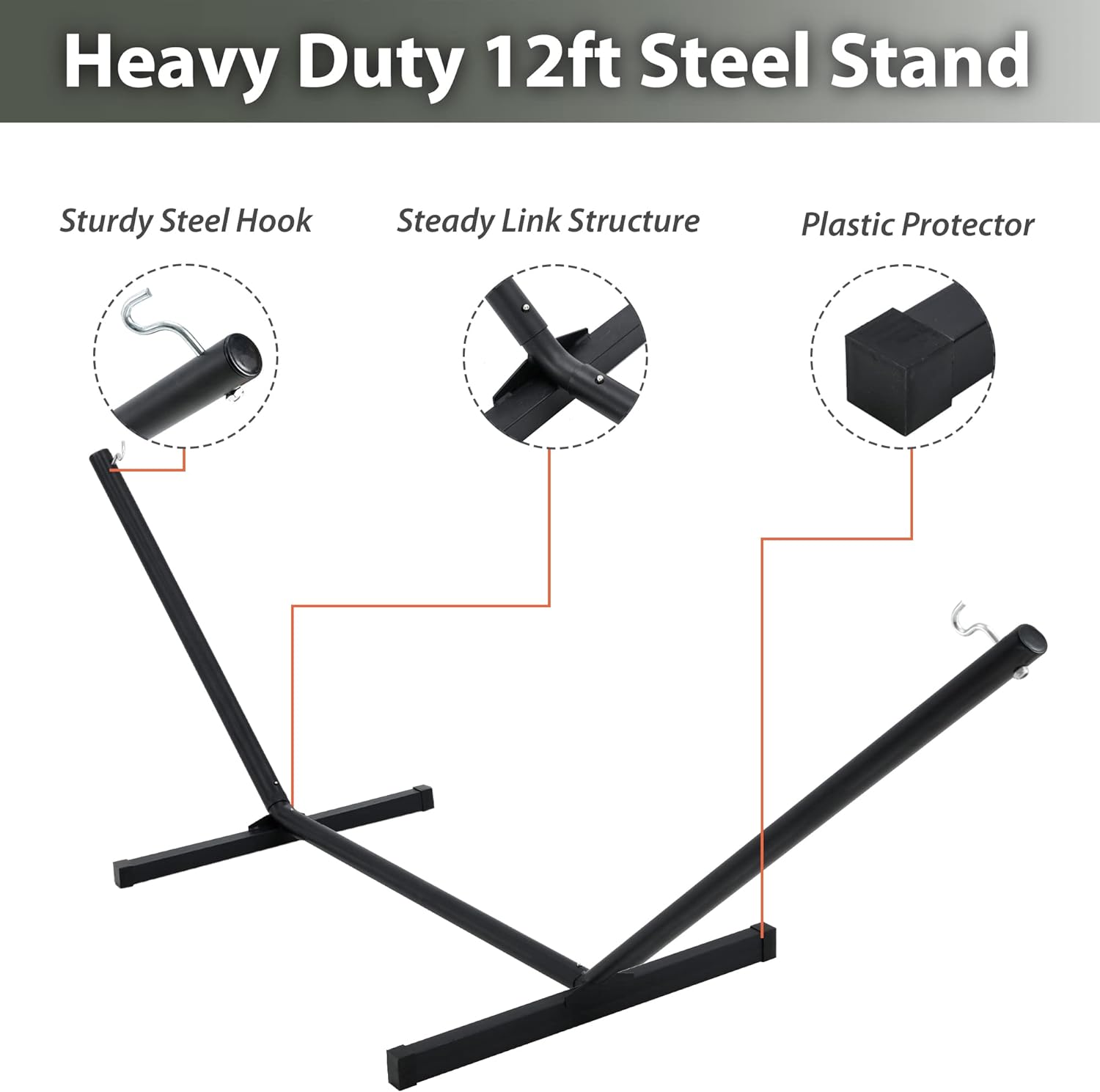 - ăComfortable & Durable DesignăHammock with quality & coated steel stand, hand-woven strong ropes, double-layer quilted polyester fabric with poly fiber filling is durable to safely support a maximum capacity of 480 pounds. A detachable large soft pillow offers superior comfort when using.