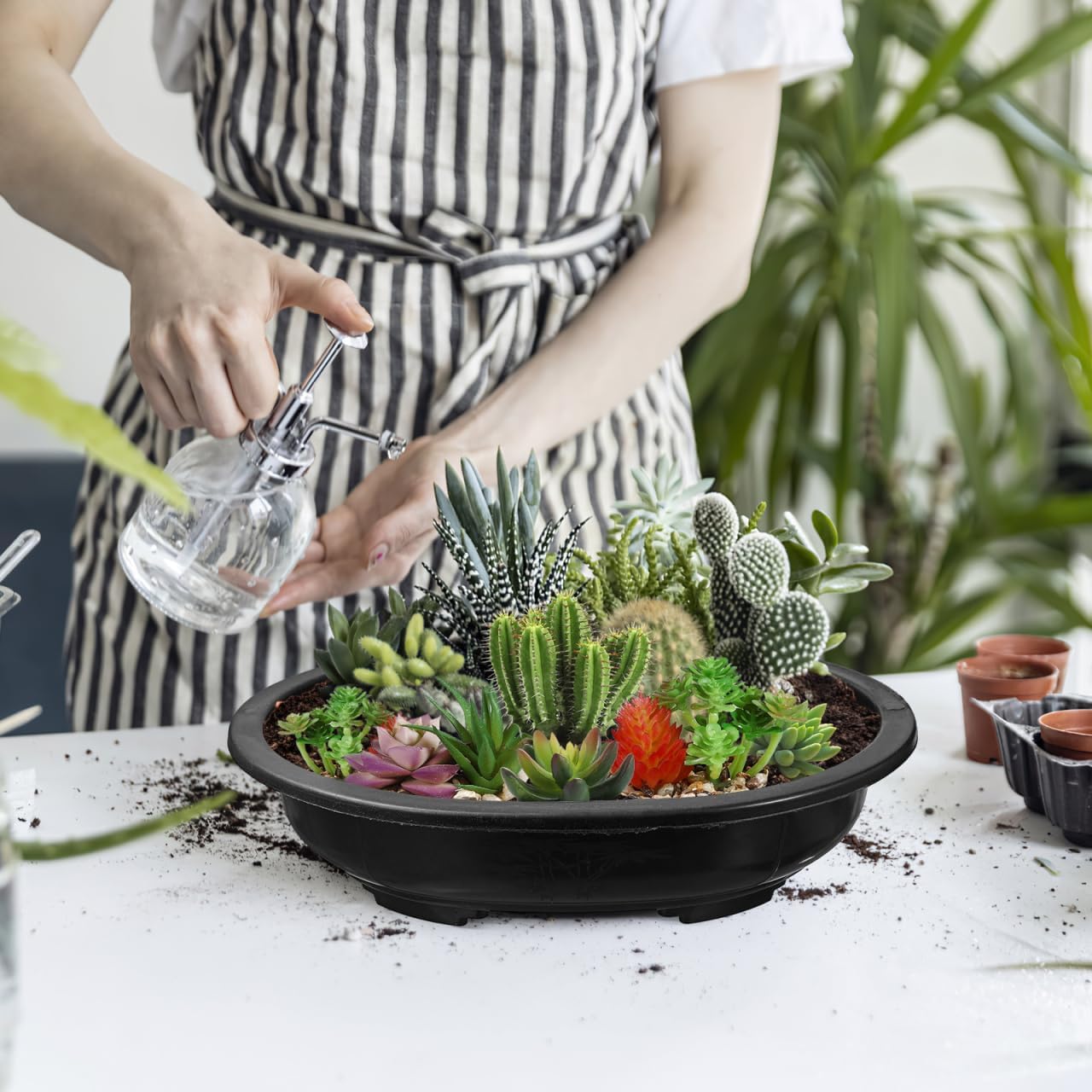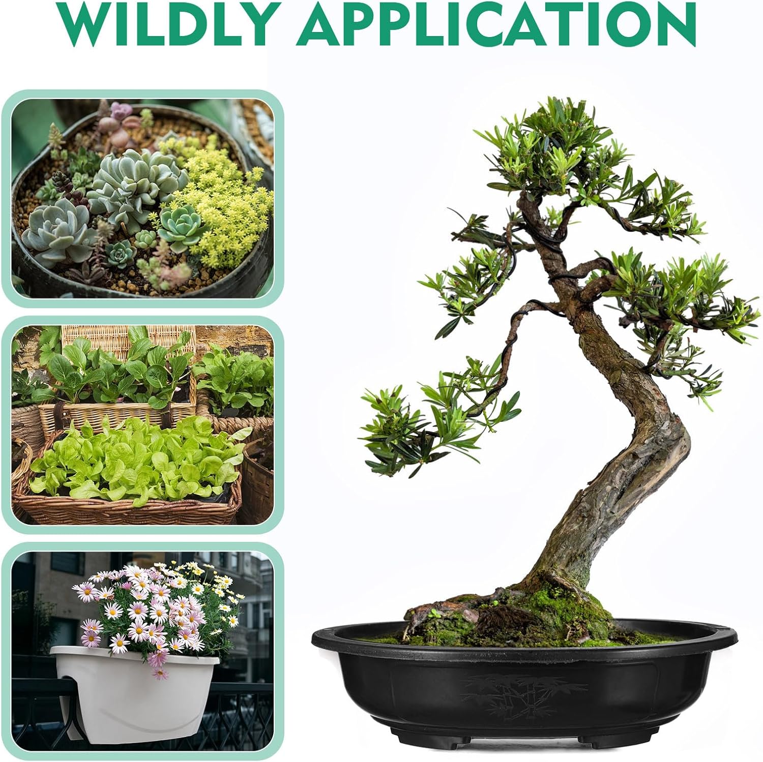 - Accessories: Our large oval shape bonsai with rolled edges are suitable for bonsai training. Classic shape and traditional style make it for home, office. These 6pcs plastic flowerpots offer ample space for your bonsai trees and other plants, measuring 14.76 x 11.41 x 3.14 inches, perfect for both indoor and outdoor gardening