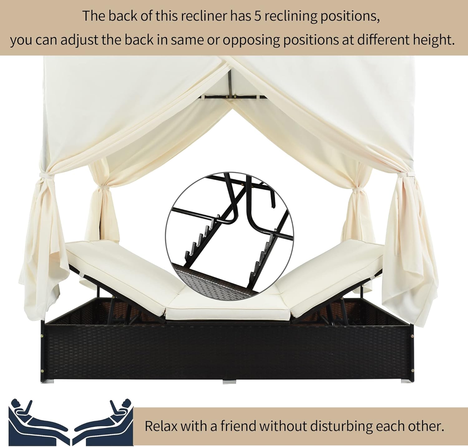 - 【Adjustable Back】The adjustable backrest offers 5 reclining positions, including fully reclined so that you can adjust the back to your favorite. Just lie on the daybed, fully relax yourself and enjoy the quality time with your family or friends.