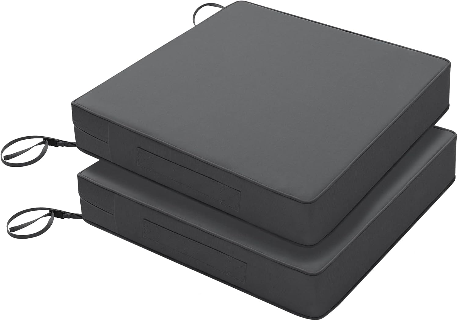 Favoyard Patio Chair Cushions 24 x 24 x 4 Inch Waterproof Outdoor Seat Cushions for Patio Furniture 3-Year Color Fastness Garden Sofa Couch Pads with Handle & Adjustable Straps Set of 2, Dark Grey