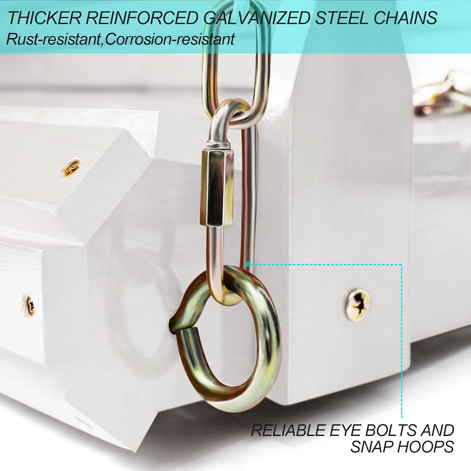 - ăReliable Steel Chains & AnchorsăThis patio swing chair is hanged with 2 reinforced galvanized steel chains which is strong,rust-resistant and weatherproof,provide you extra security and stability,four reliable anchor points at the joint prevent this seat from tipping over,offer you a perfect balance,ensure you a safer seating experience!Feel free to adjust the angle and height of the bench swing by adjusting the well-polished steel chains to make this swing fit you better!