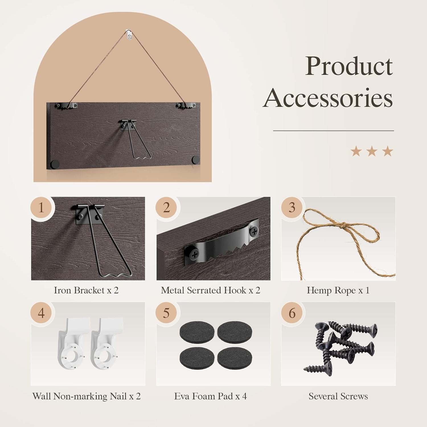 - πͺ Exquisite Home Decoration -- Natural grain wood is suitable for retro style home improvement, country house, lake house, new office, personal studio. Comes with a variety of accessories, as long as it is simple to install, it can be hung on the wall or placed on the desktop.