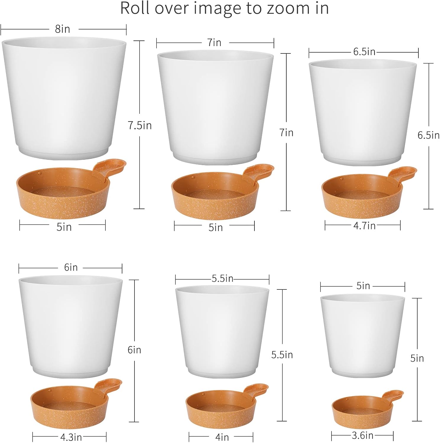 GARDIFE Plant Pots 8/7/6.5/6/5.5/5 Inch Self Watering Planters with Drainage Hole, Plastic Flower Pots, Nursery Planting Pot for All House Plants, African Violet, Flowers, and Cactus,White