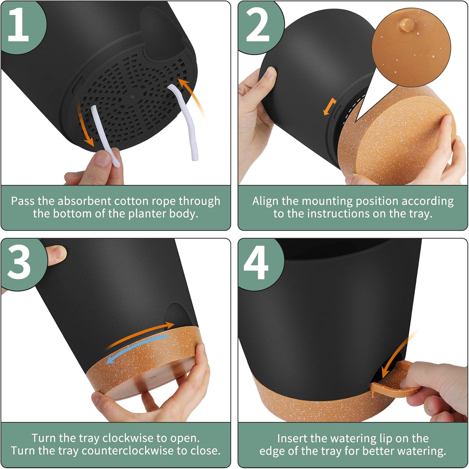 GARDIFE Plant Pots 8/7/6.5/6/5.5/5 Inch Self Watering Planters with Drainage Hole, Plastic Flower Pots, Nursery Planting Pot for All House Plants, African Violet, Flowers, and Cactus,Black