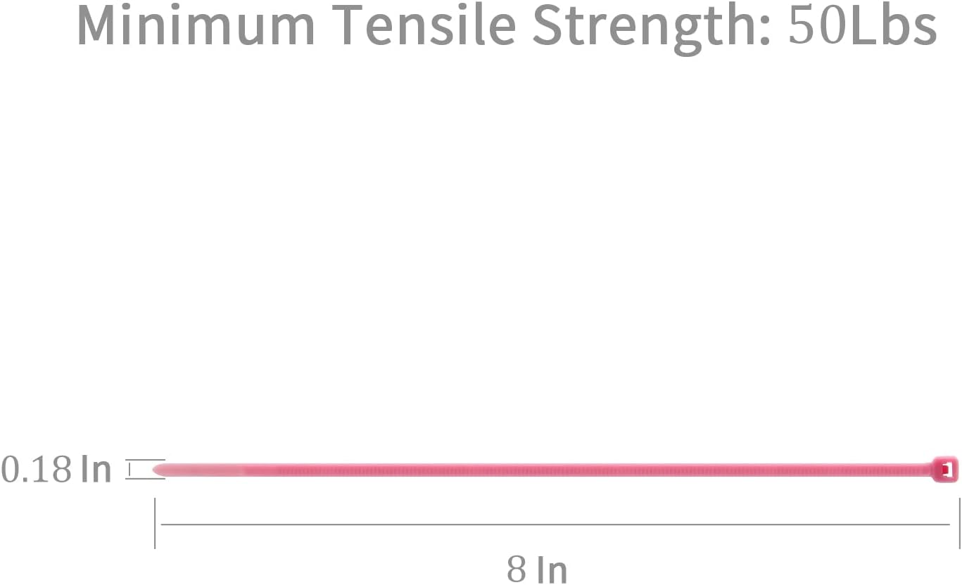 XINGO 1000 PCS Pink Zip Ties 8 Inch, 60 LBS Tensile Strength, Self-Locking Nylon Plastic Nylon PA66 Wire Ties for Indoor and Outdoor Use