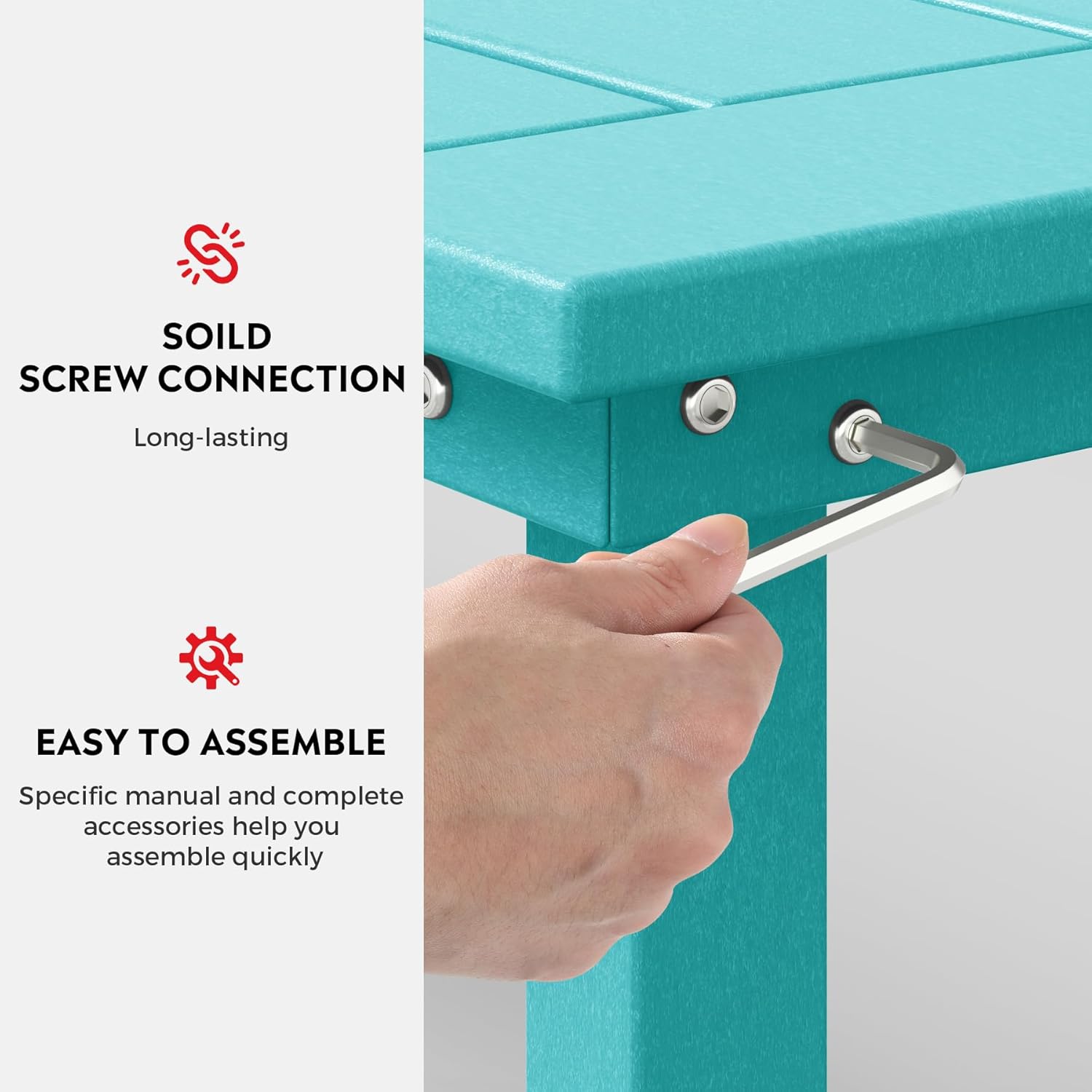Outdoor Benches Weatherproof, Park Long Bench Poly Lumber Backless for Entryway Front Porch Garden Bench Seat for Patio, Turquoise