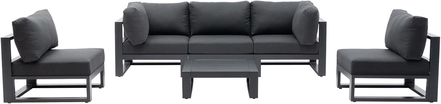 - OVERALL DIMENSION(FULLY ASSEMBLED): Single Armless Sofa Dimension: 27.6"W x 30.7"D x 23.6"H. Single Corner Sofa Dimension: 30.7"W x 30.7"D x 23.6"H. Square Coffee Table Dimension: 27.6"D x 27.6"W x 9.8"H. Each single sofa can support up to 330 pounds and this set is designed to seat five people. Featuring clean lines and timeless silhouettes, this modern style conversation set is an ideal set to perfectly fulfill your needs for outdoor leisure and entertainment.