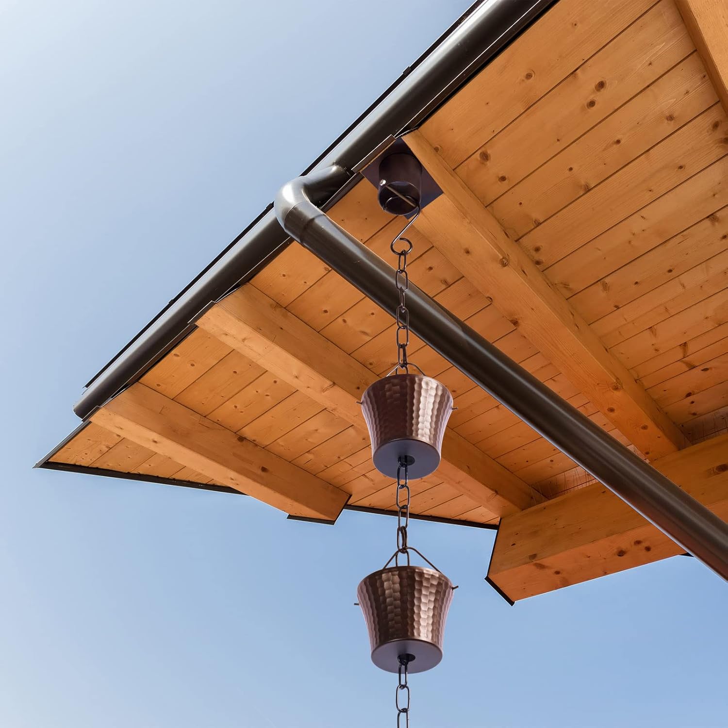 - Classic Looking Design:The standard length of the gutter rain chains is 8.5 FT. The rain chain is made of larger size of 14 CUP,combined with each other, so beautiful that water flows down each cup on the rain chains, creating a beautiful water feature.(✅❗NOTE:✅Single cup siez 3.95 inch wide, 3 inch high cylindrical cups and chains)