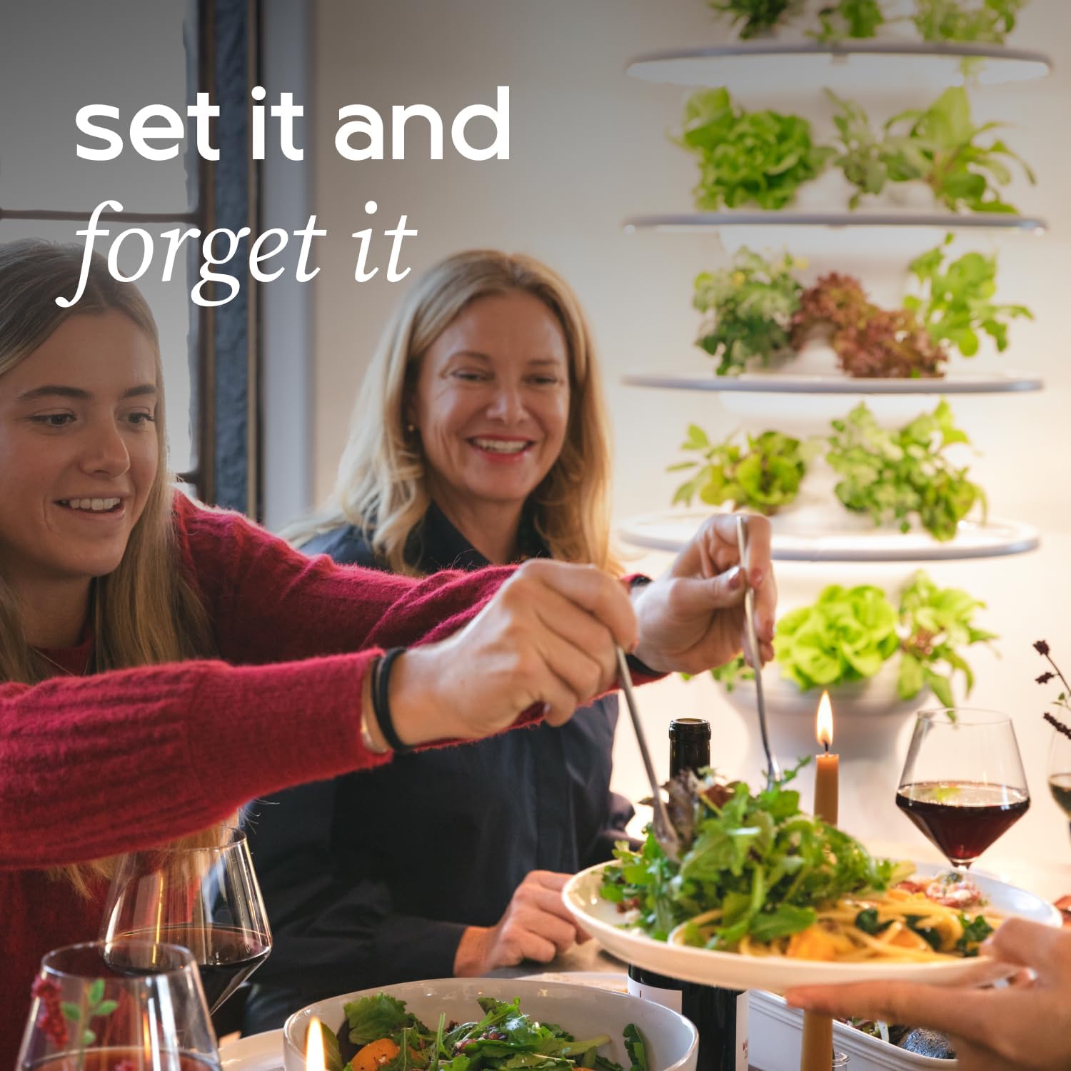 - ENERGY EFFICIENT, TIMED GLOW RINGS: Our glow rings fit seamlessly to your Farmstand, to keep plants thriving from the living room to the breakfast nook. These 96W high-efficiency LED lights can be timed to facilitate seedling growth with a glow that’s pleasant for plants and people alike.