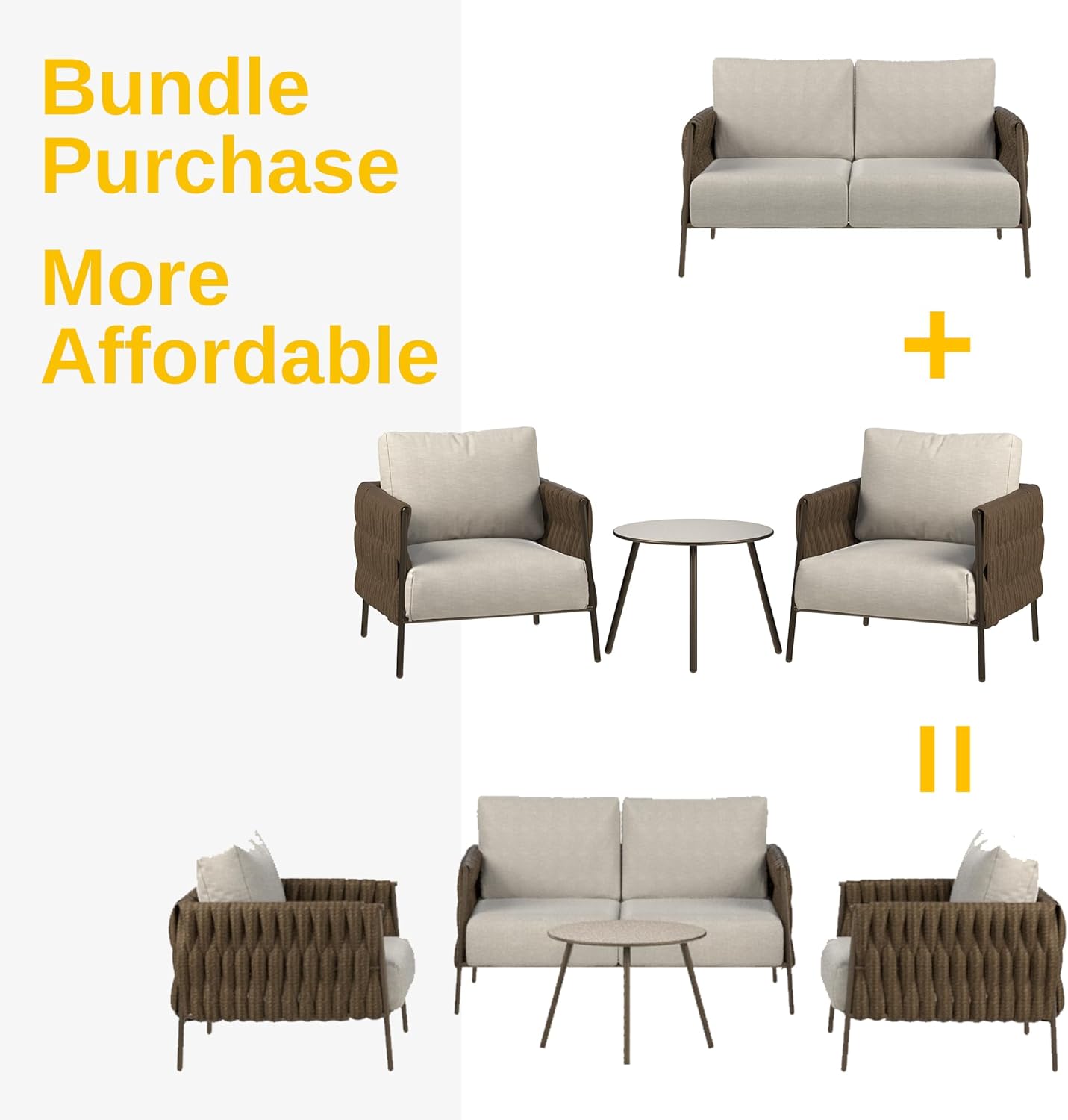 - PREMIUM MATERLIAL FOR LASTING USE:Our patio sofa is braided from delicate Olefin wide rope and has a strong visual sense and good comfort. The Olefin cushion cover comes with TPU coating treatment, and is stitched with encrypted Teslin which is waterproof and breathable. Compared with ordinary ratten materials, the Olefin fabric is thoughtfully crafted and built to withstand the extremes weather, has features of better touch, wear resistance and good color fastness to meet the outdoor use requirements. All durable performance is designed to ensure long-lasting comfort