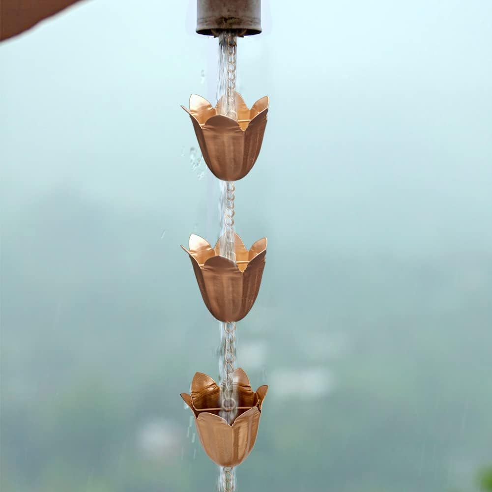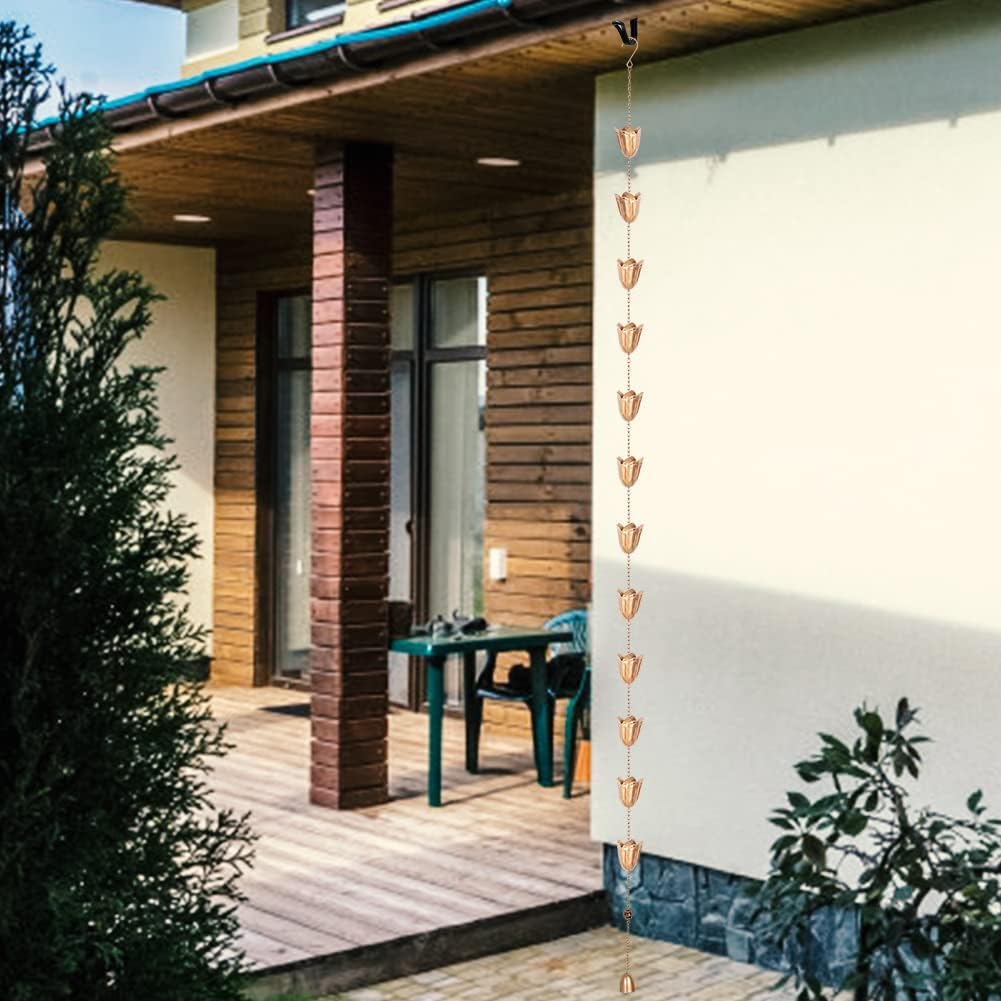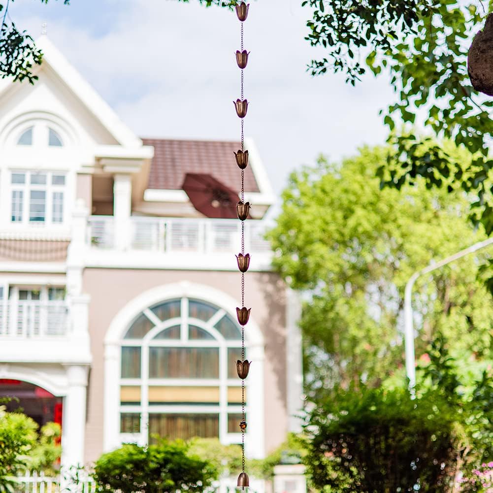 - Wide Application: Rainwater flows gracefully down the rain water chain, it will emit a soothing sound of water flow, the bottom of the rain chain is designed with a bell pendant. With the collision of the wind, it will gently flutter, adding unique charm to the outdoor environment