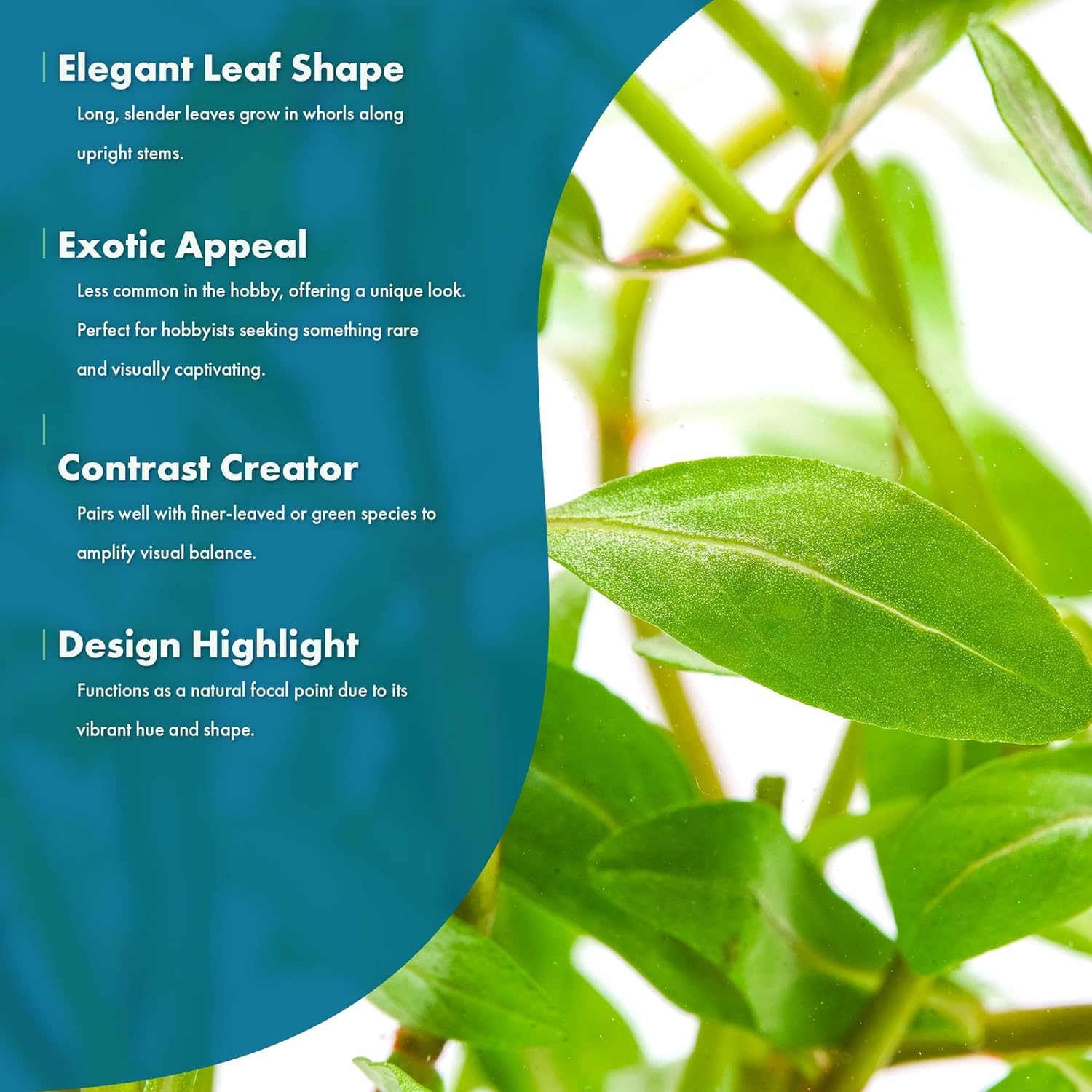 - Ammannia sulawesi produces striking orange to pink stems with hints of green, making it a bold centerpiece or accent for midground and rear aquascaping zones.