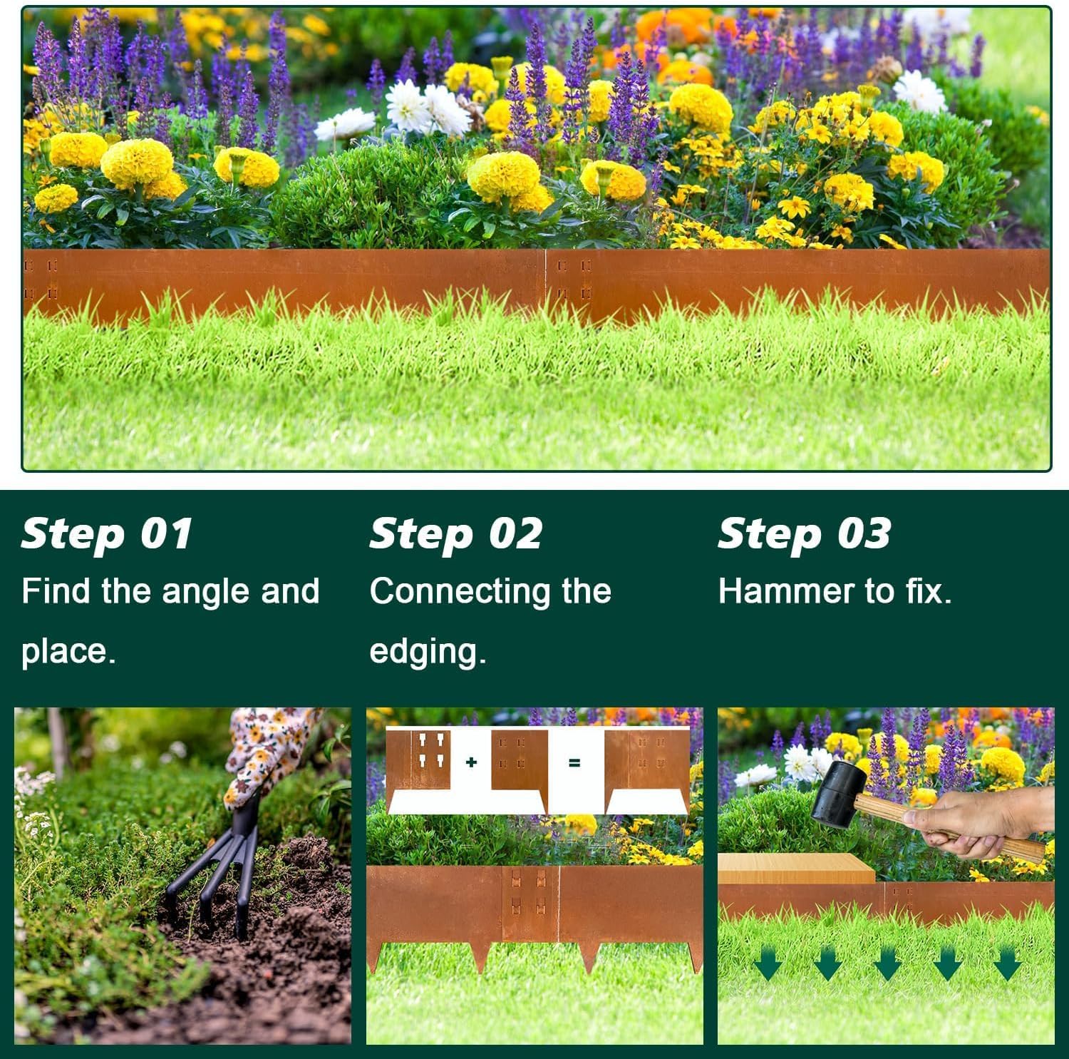 - [ Metal Landscape Edging] - Metal garden edgings are made of corten steel, which can be used for a long time without fading. And no special maintenance, can resist any bad weather