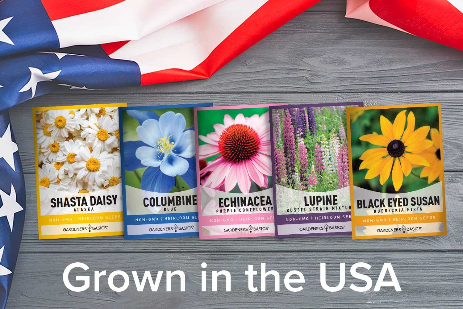 Gardeners Basics, Perennial Flower Seeds for Planting Outdoors (5 Variety Pack) Lupine, Columbine, Echinacea Purple Coneflower, Black Eyed Susan, Shasta Daisy for Pollinators Wildflower Seed