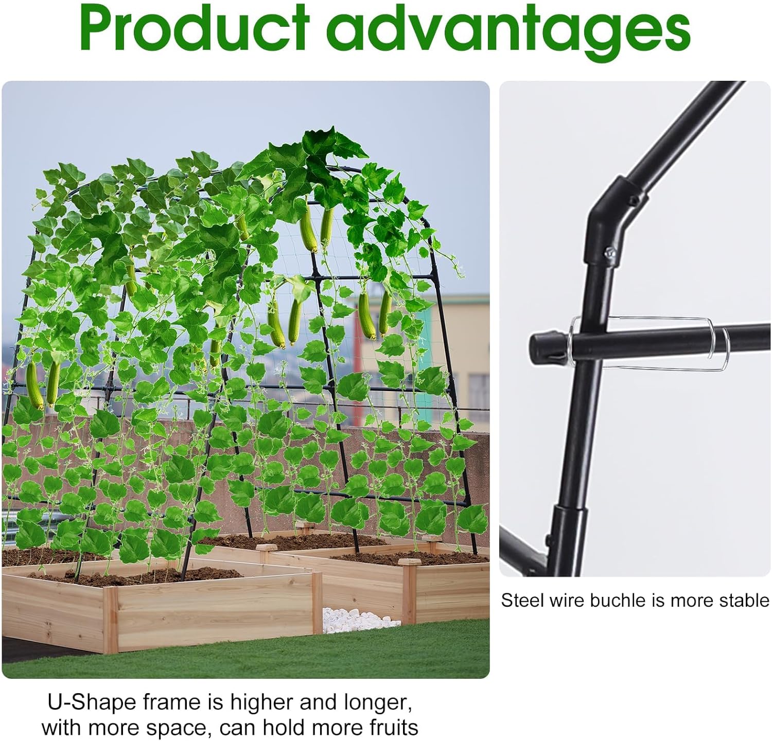 - Sturdy and Durable -- Polyethylene-casing steel frame protects the tunnel trellis from rusting; The metal clips used to hold it together, increases the strength of the structure; Holds up to 75 lbs, against wind and vegetable weight