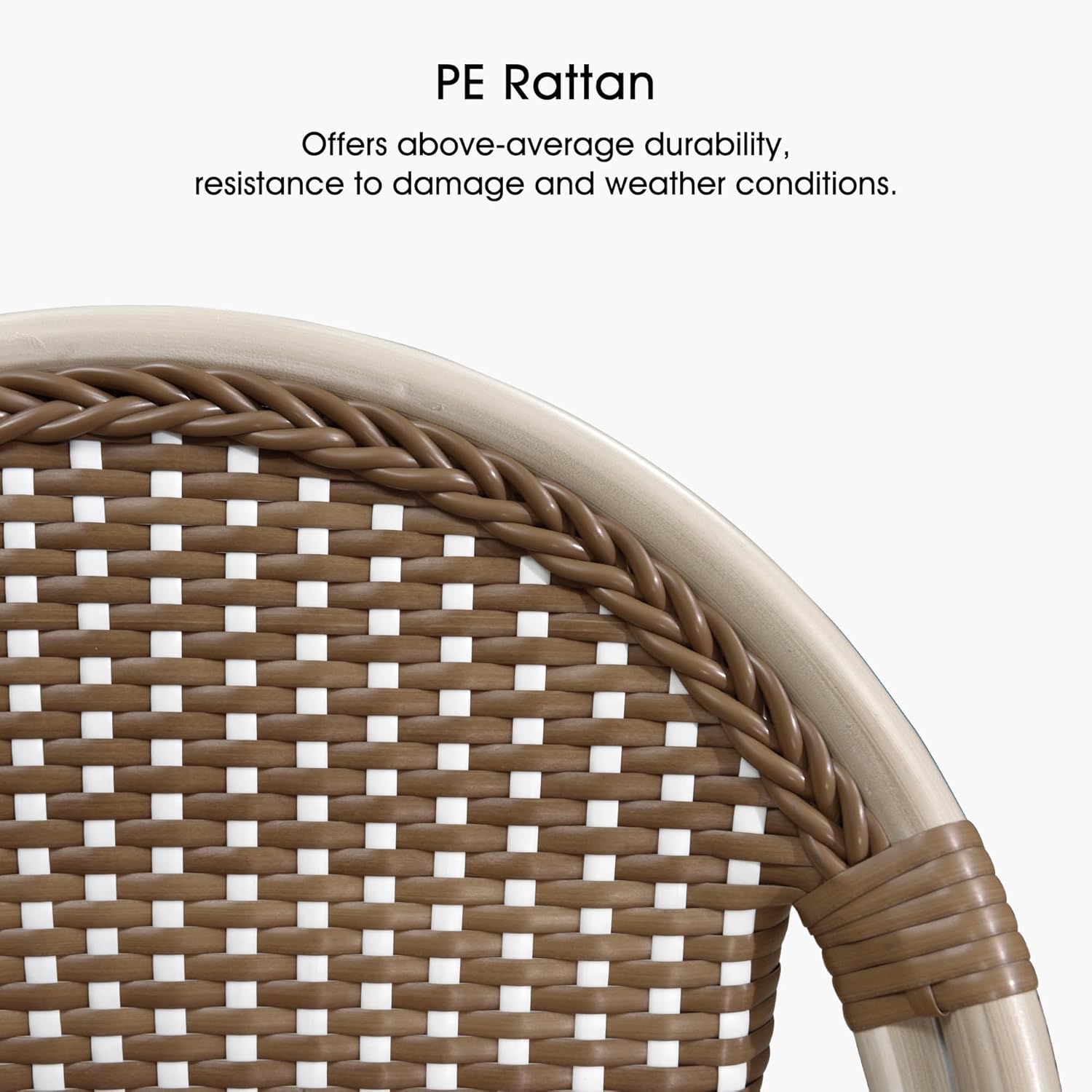 PURPLE LEAF French Bar Stool Set of 2 White Print Finish Patio Bar Stools with Back Rattan Chairs Wicker Bar Height Stool 30" with Footrest Kitchen Island Stools Outdoor Barstool Brown