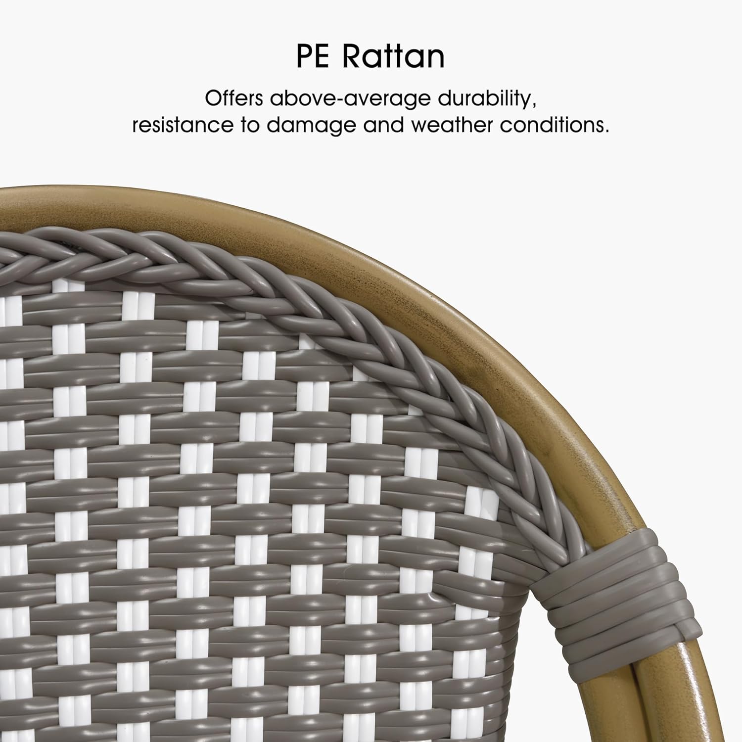 PURPLE LEAF French Counter Height Bar Stool Set of 2 25" Bamboo Print Finish Patio Bar Chairs with Back Rattan Bar Chairs French Bistro Set for Kitchen Outdoor Counter Stool Grey