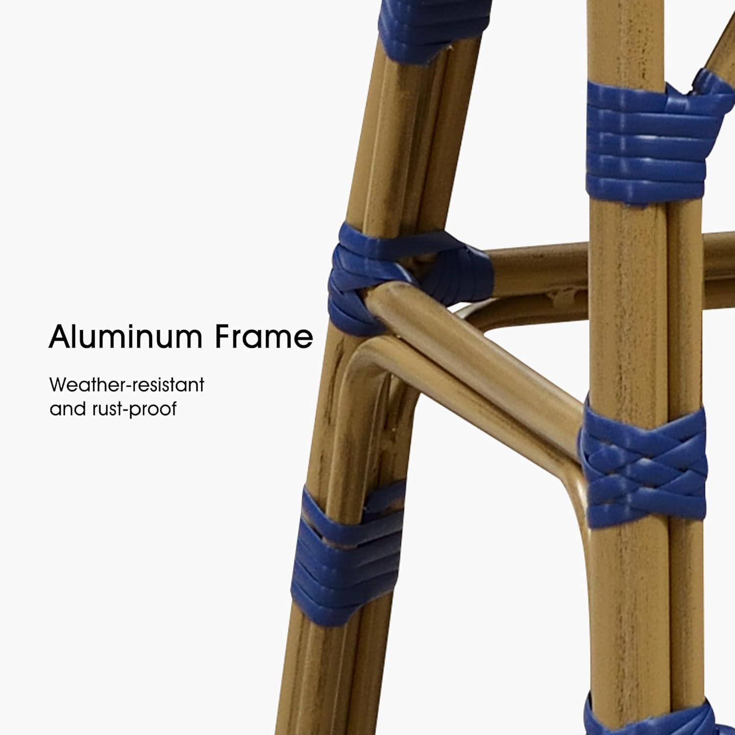 PURPLE LEAF French Counter Height Bar Stool Set of 2 25" Bamboo Print Finish Patio Bar Chairs with Back Rattan Bar Chairs French Bistro Set for Kitchen Outdoor Counter Stool Royal Blue