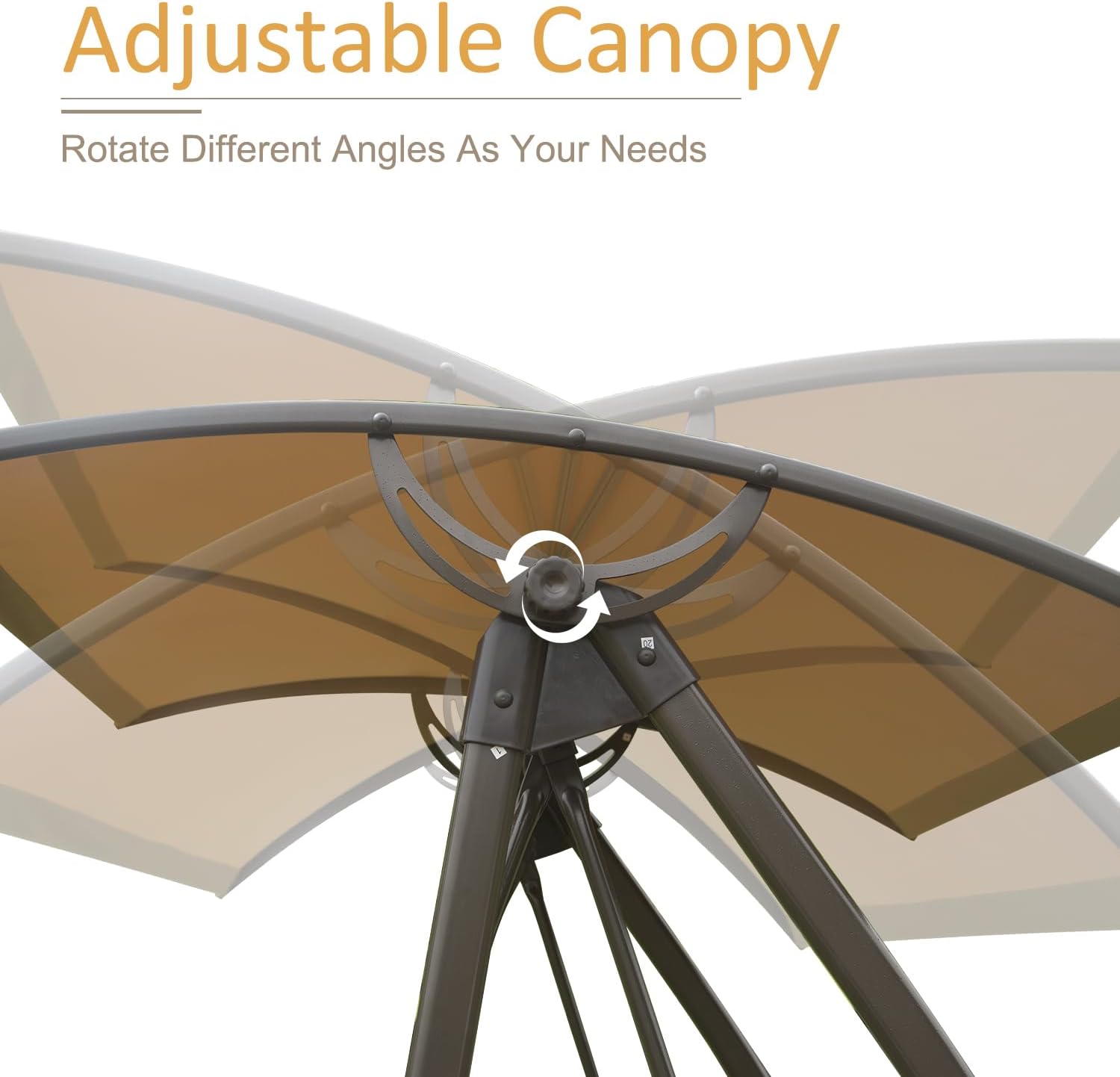 - [Adjustable Canopy] The 2 person swing upgraded designed with an adjustable canopy to match your different needs for the sunlight. Enjoy your leisure time for any time and any where.