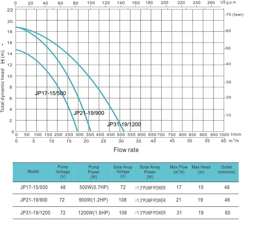 Solar Swimming Pool Pump, PWS Powerful Solar Water Pump with MPPT Controller,72VDC, 1.2HP, 62ft, 92GPM,Suitable for Salt Water, JP21-19/900