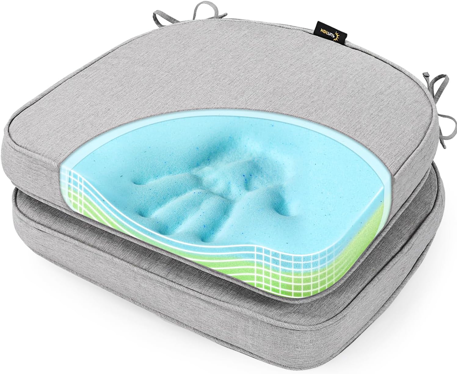 SUNROX Gel Memory Foam Chair Cushions, FadeShield Water-, Stain-Resistant Durable Reversible Seat Cushion Pads with Ties for Indoor/Outdoor Kitchen Dining Office 17"x16" Set of 2, Heather Grey