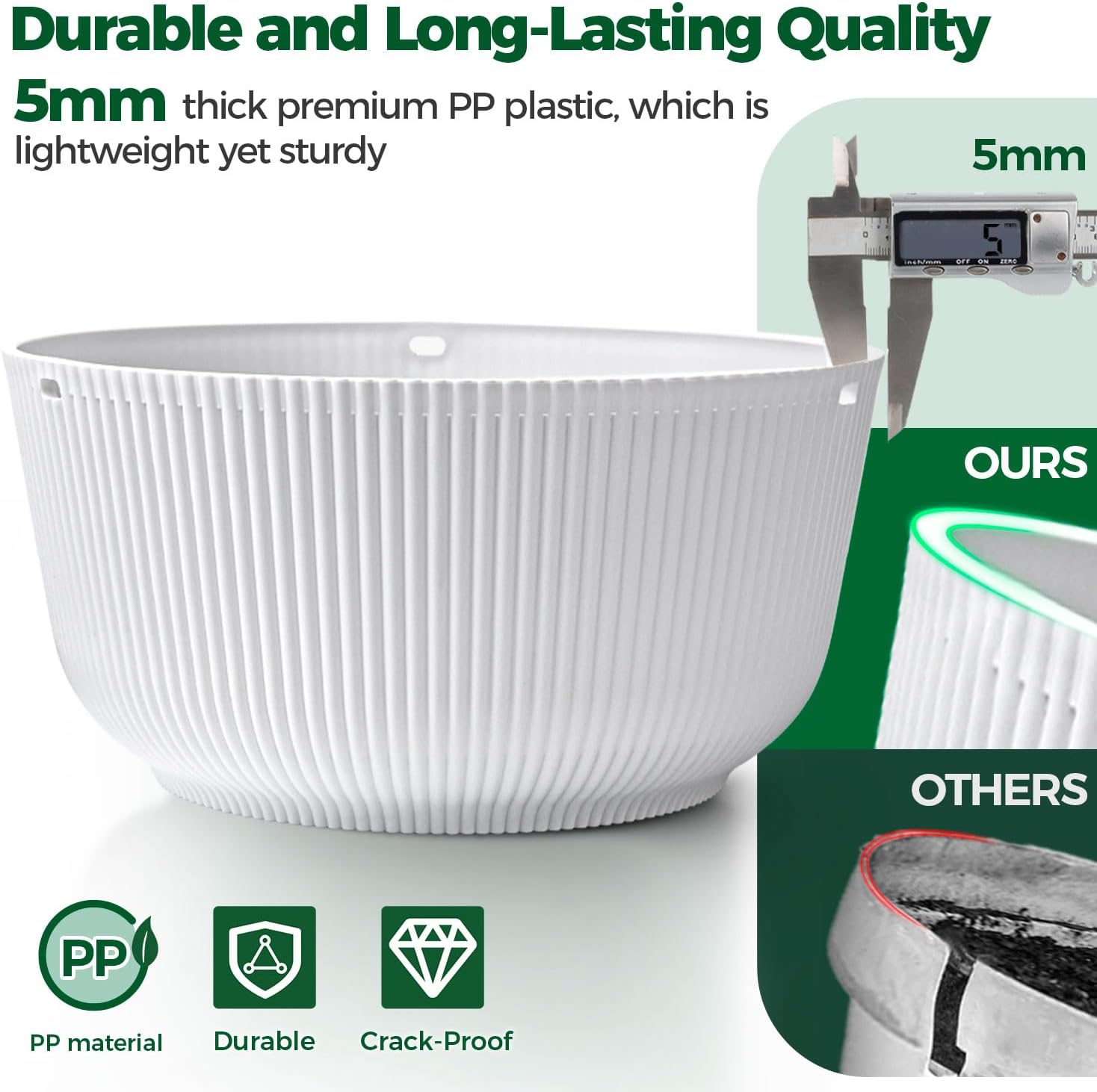 - Minimalist Design:T4U Hanging Planter are well made with modern and sturdy looking. The white plastic appearance is both simple and elegant and would go with any plants such as your spider plant, vine plants, ivy, ferns, succulent, flowers or other plants