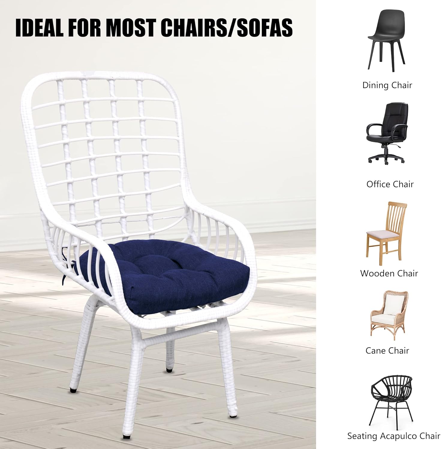 - Non-slip Design: With Full-length attached ties, you can conveniently secure the indoor-outdoor chair cushion to your seat. This multi-purpose cushion is perfect for kitchen dining table chairs, office chairs, outdoor chairs, and any other hard chair that needs additional comfort