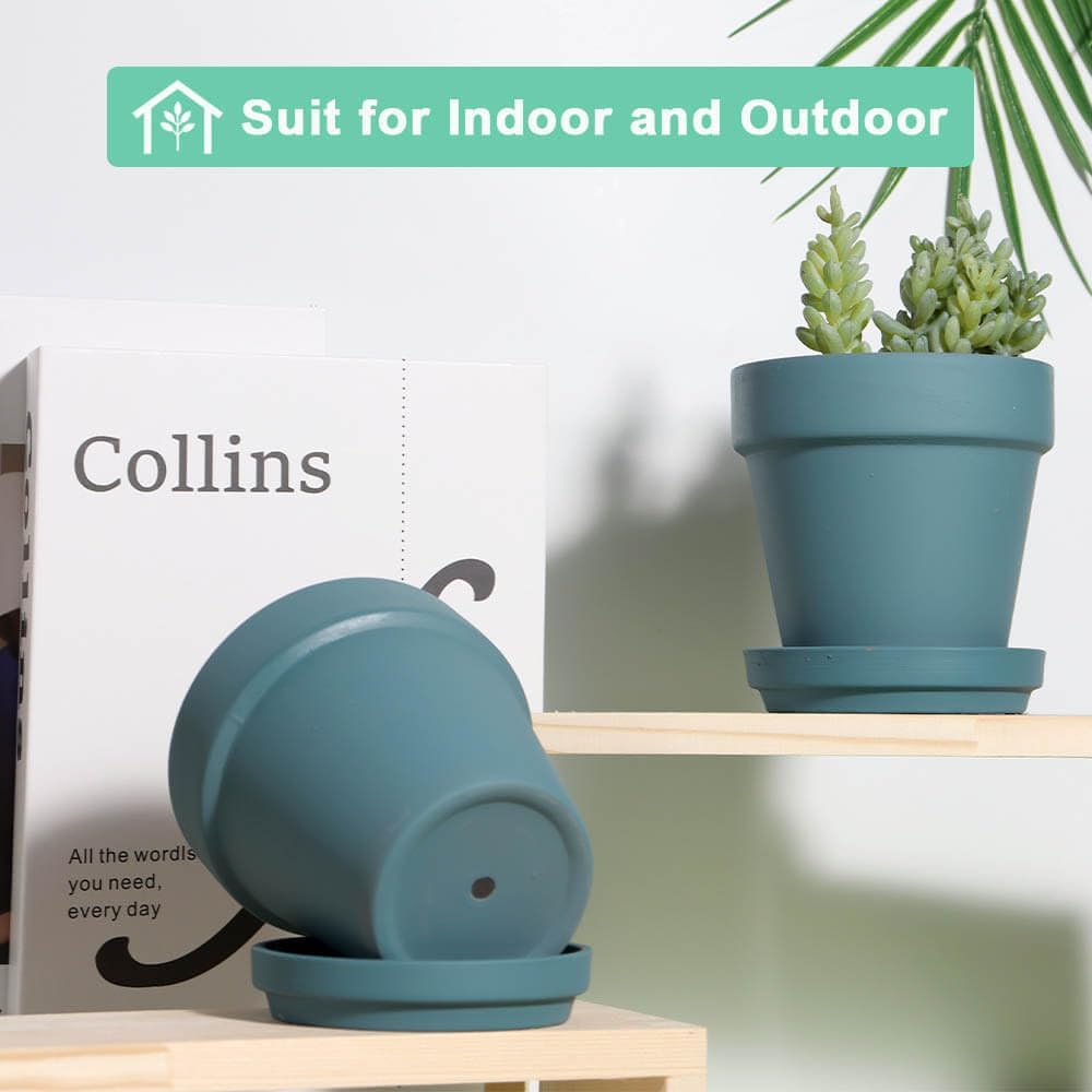 vensovo 6 Inch Steel Blue Terracotta & Clay Pots for Plant with Saucer - 4 Pack Medium Terra Cotta Planter with Drainage Hole, Flowerpot for Indoor Outdoor Plants, Crafts, Wedding Favor