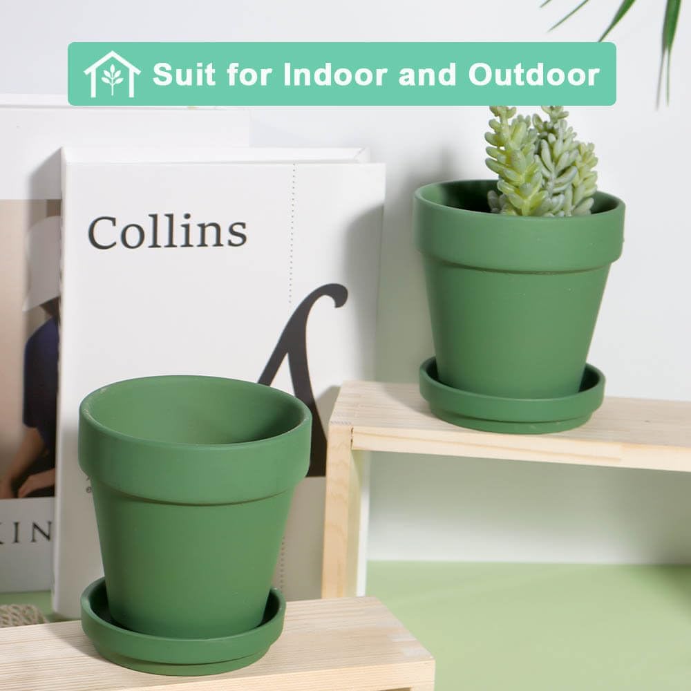 vensovo 6 Inch Green Terracotta & Clay Pots for Plant with Saucer - 4 Pack Medium Terra Cotta Planter with Drainage Hole, Flowerpot for Indoor Outdoor Plants, Crafts, Wedding Favor