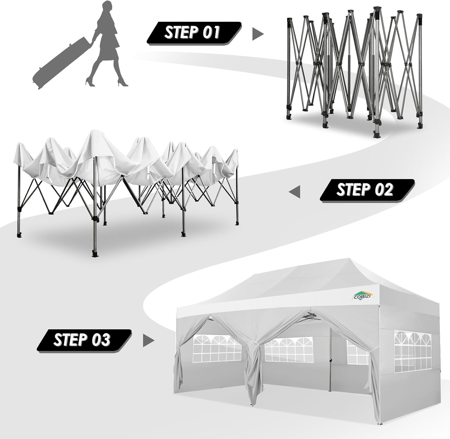 COBIZI 10x20 Canopy with Sidewalls, Heavy duty Party Tent Pop up carpas para fiestas, Tents for Parties, wedding, Outdoor Ez up Foldable Portable Canopy Tent with Wheeled Bag, White(Windproof Upgrade)