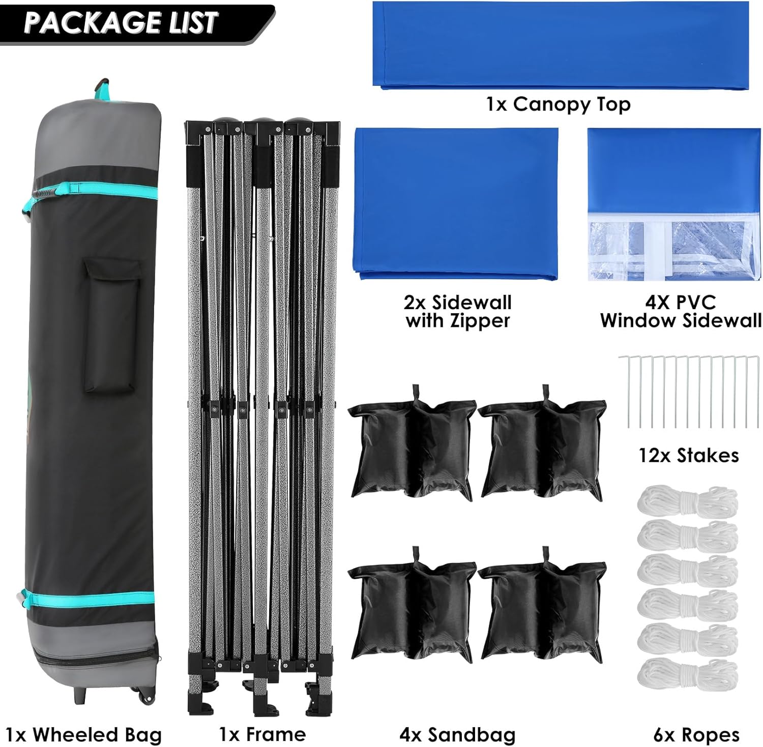 COBIZI 10x20 Canopy with Sidewalls, Heavy Duty Party Tent Pop up carpas para Fiestas, Tents for Parties, Wedding, Outdoor Ez up Foldable Portable Canopy Tent with Wheeled Bag, Blue(Windproof Upgrade)