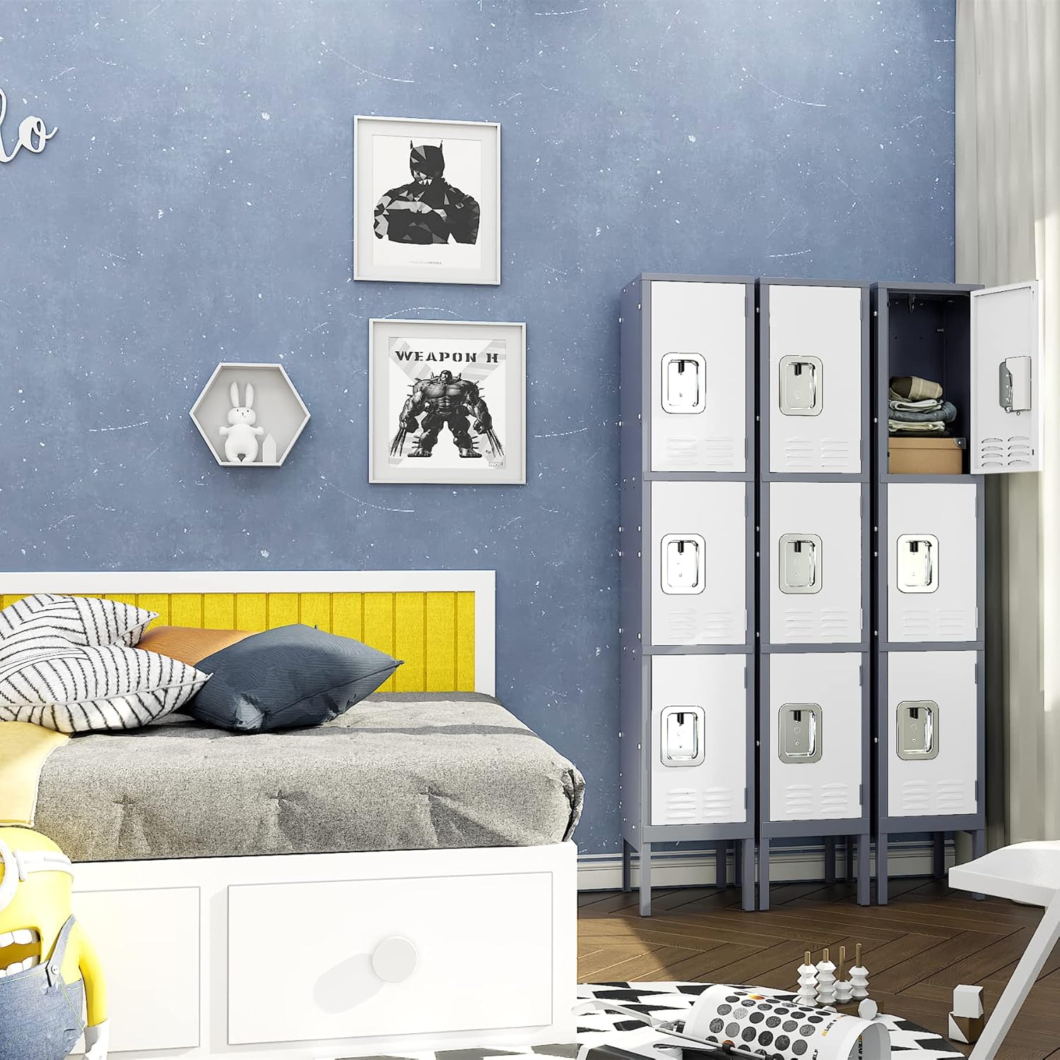 Yizosh Metal Lockers for Employees with Lock, Employees Locker Storage Cabinet with 1 Doors, Tall Steel Storage Locker for Gym, School, Office (Gray White, 3 Door)