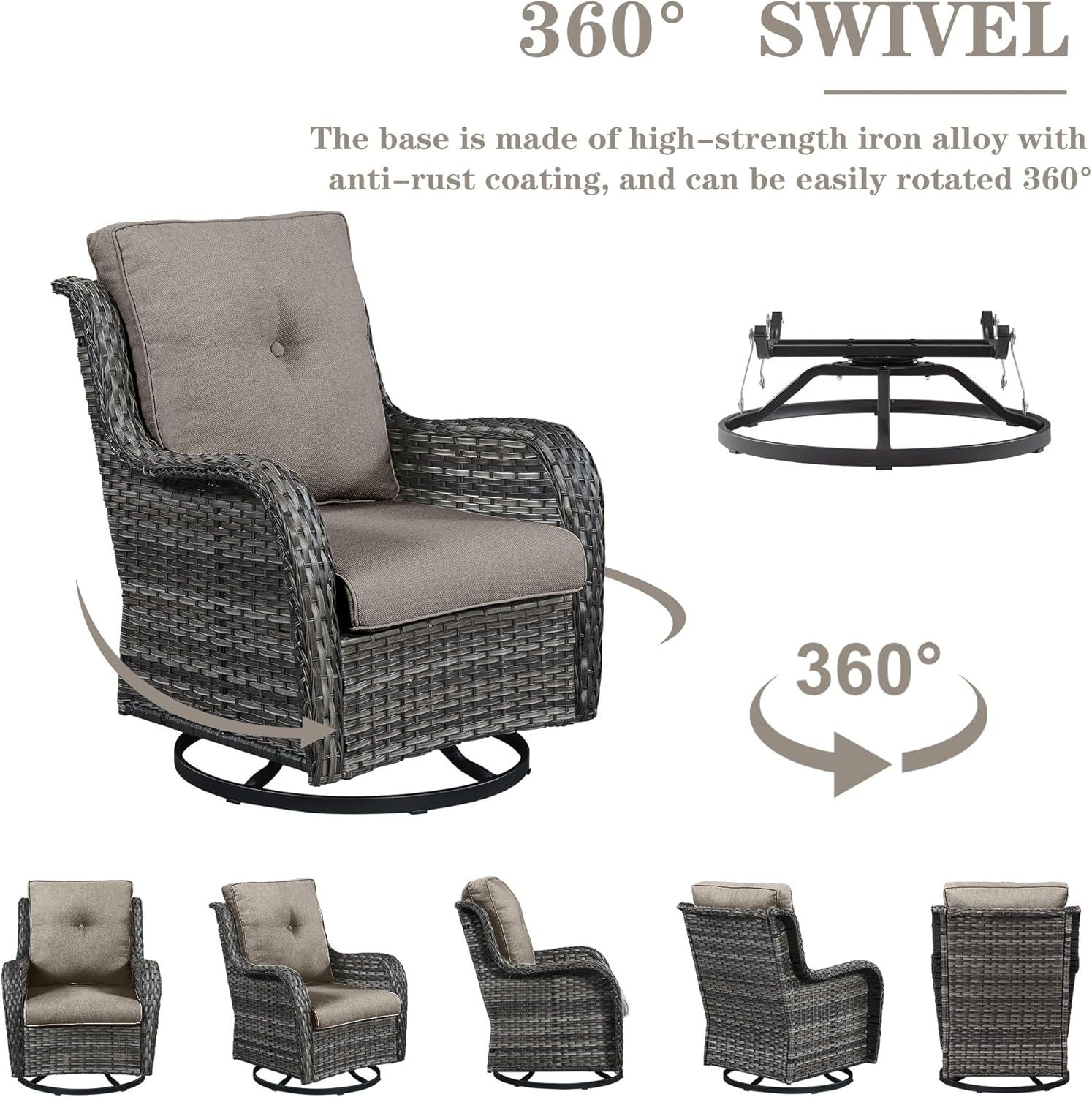 Wicker Outdoor Furniture Patio Furniture Set - 6 Piece Patio Conversation Set with Swivel Rocker Chairs, Rattan Sofa, Ottomans and Coffee Table, Gray Cushion